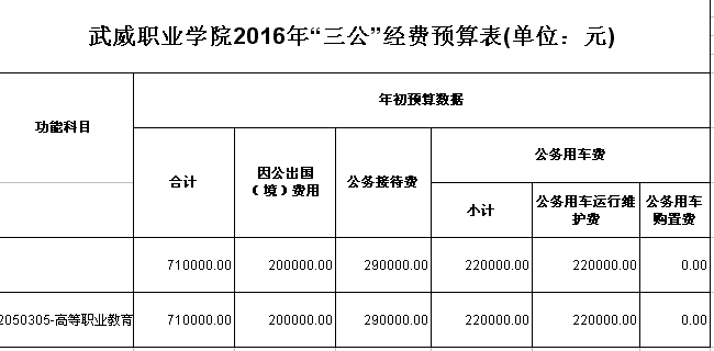 武威職業(yè)學院2016年部門預算和“三公”經費預算公開