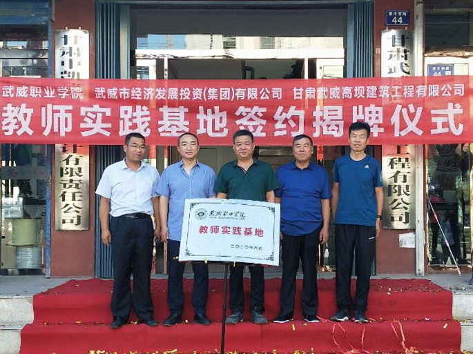 2020年8月9日,學(xué)院聯(lián)合武威市經(jīng)濟(jì)發(fā)展(集團(tuán))有限公司、甘肅武威高壩建筑工程有限公司,在甘肅武威高壩建筑工程有限公司大樓前舉行武威職業(yè)學(xué)院教師實(shí)踐基地簽約揭牌儀式。學(xué)院黨委書記、院長趙明,基建處負(fù)責(zé)人賈龍,建筑工程系副主任蔡濟(jì)眾,黨建負(fù)責(zé)人孫潤元;武威市經(jīng)濟(jì)發(fā)展(集團(tuán))有限公司董事長崔國斌、副董事長董英,甘肅武威高壩建筑工程有限公司總經(jīng)理周勝年出席簽約揭牌儀式。