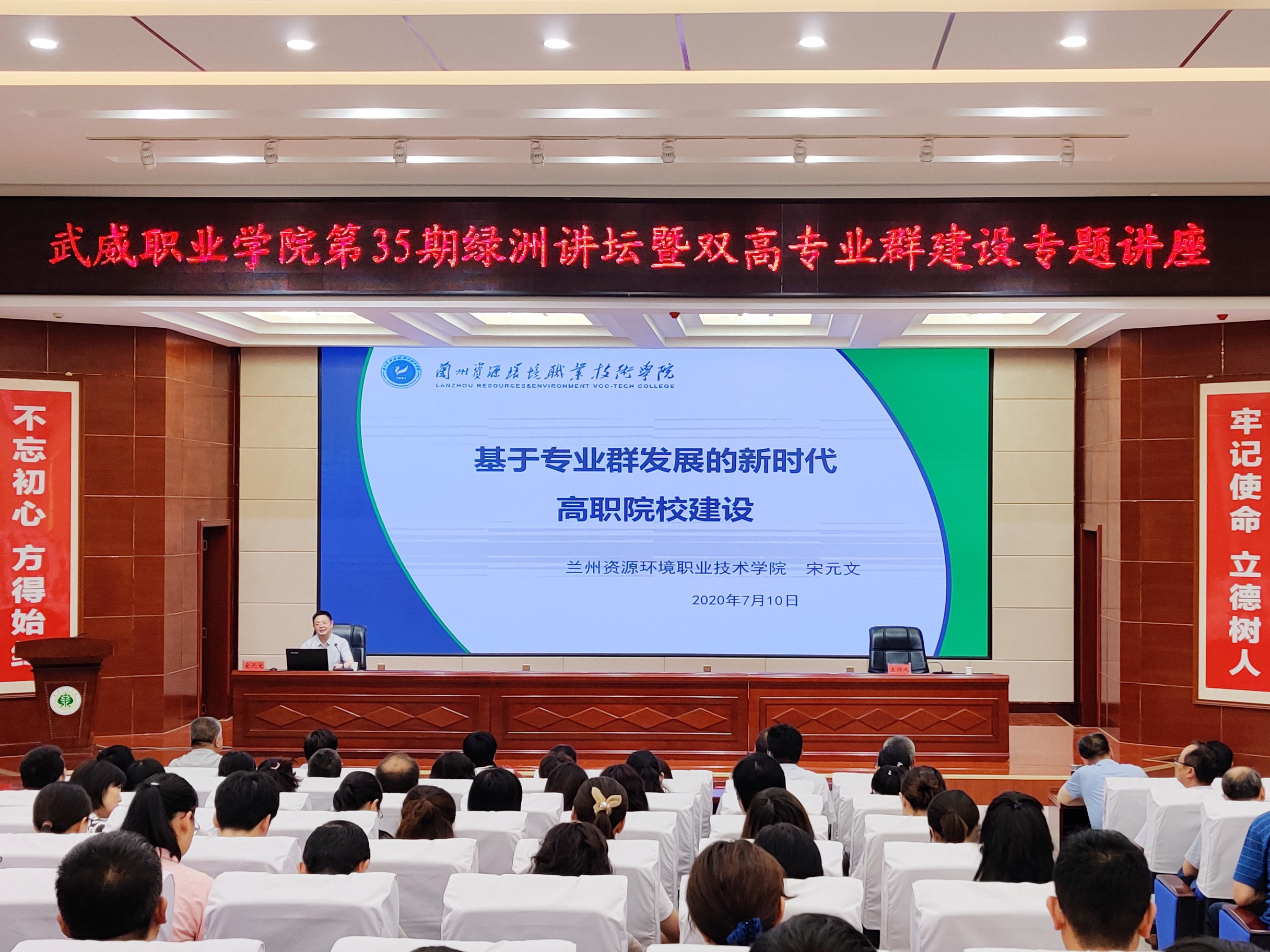 7月11日上午,學(xué)院在大學(xué)生活動(dòng)中心菁英廳舉辦第35期綠洲講壇暨雙高專業(yè)群建設(shè)專題講座。學(xué)院黨委書(shū)記、院長(zhǎng)趙明主持報(bào)告會(huì),黨委副書(shū)記翟存祥,黨委委員、副院長(zhǎng)田迎春、何毅、張開(kāi)禮、王守云,武威職教集團(tuán)成員單位代表,學(xué)院各部門和教學(xué)院系負(fù)責(zé)人、專業(yè)負(fù)責(zé)人和教師代表共計(jì)200余人參加了報(bào)告會(huì)。圖為蘭州資源環(huán)境職業(yè)技術(shù)學(xué)院黨委委員、副院長(zhǎng)宋元文教授作“基于專業(yè)群發(fā)展的新時(shí)代高職院校建設(shè)”專題報(bào)告。