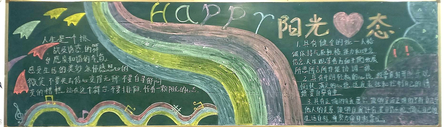為進一步提高大學生的心理素質,促進大學生的身心健康和諧,宣傳普及心理健康知識,深入開展心理健康教育,我系結合學院特點,突出專業(yè)優(yōu)勢,在積極承擔和參與學校心理健康活動月的團日活動的同時,各班開展了豐富多彩的以“心理健康”為主題的黑板報。