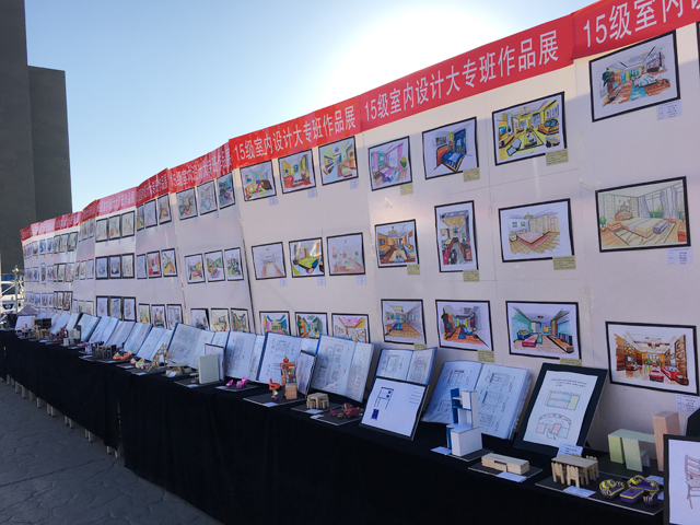 此次展覽共計展出作品1000余件,由學(xué)前教育、室內(nèi)設(shè)計和數(shù)字媒體3個專業(yè)學(xué)生共同展出,涉及到裝飾畫、平面構(gòu)成、立體構(gòu)成、家具陳設(shè)、室內(nèi)設(shè)計制圖與手繪效果表現(xiàn)等6門課程,作品內(nèi)容豐富,形式多樣,充分展示了學(xué)生們的藝術(shù)創(chuàng)作風(fēng)采。