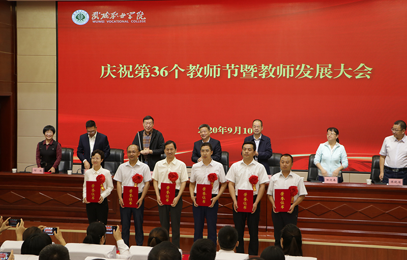 學(xué)院領(lǐng)導(dǎo)分別宣讀了《武威職業(yè)學(xué)院關(guān)于表彰獎(jiǎng)勵(lì)2020年度優(yōu)秀教師、優(yōu)秀教育工作者的決定》《關(guān)于表彰學(xué)院2020年“教書育人楷?!鲍@得者的決定》《關(guān)于表彰學(xué)院2020年“我最喜愛的老師”獲得者的決定》《武威職業(yè)學(xué)院關(guān)于表彰獎(jiǎng)勵(lì)語言文字推廣先進(jìn)個(gè)人的決定》和《關(guān)于評(píng)定2020年院級(jí)“教學(xué)名師”“教學(xué)能手”“教學(xué)新秀”的決定》《關(guān)于聘任2020年院級(jí)專業(yè)(學(xué)科)帶頭人的決定》《武威職業(yè)學(xué)院關(guān)于評(píng)定2020年院級(jí)骨干教師的決定》。楊存忠教授和學(xué)院領(lǐng)導(dǎo)分別為獲獎(jiǎng)?wù)哳C發(fā)榮譽(yù)證書。