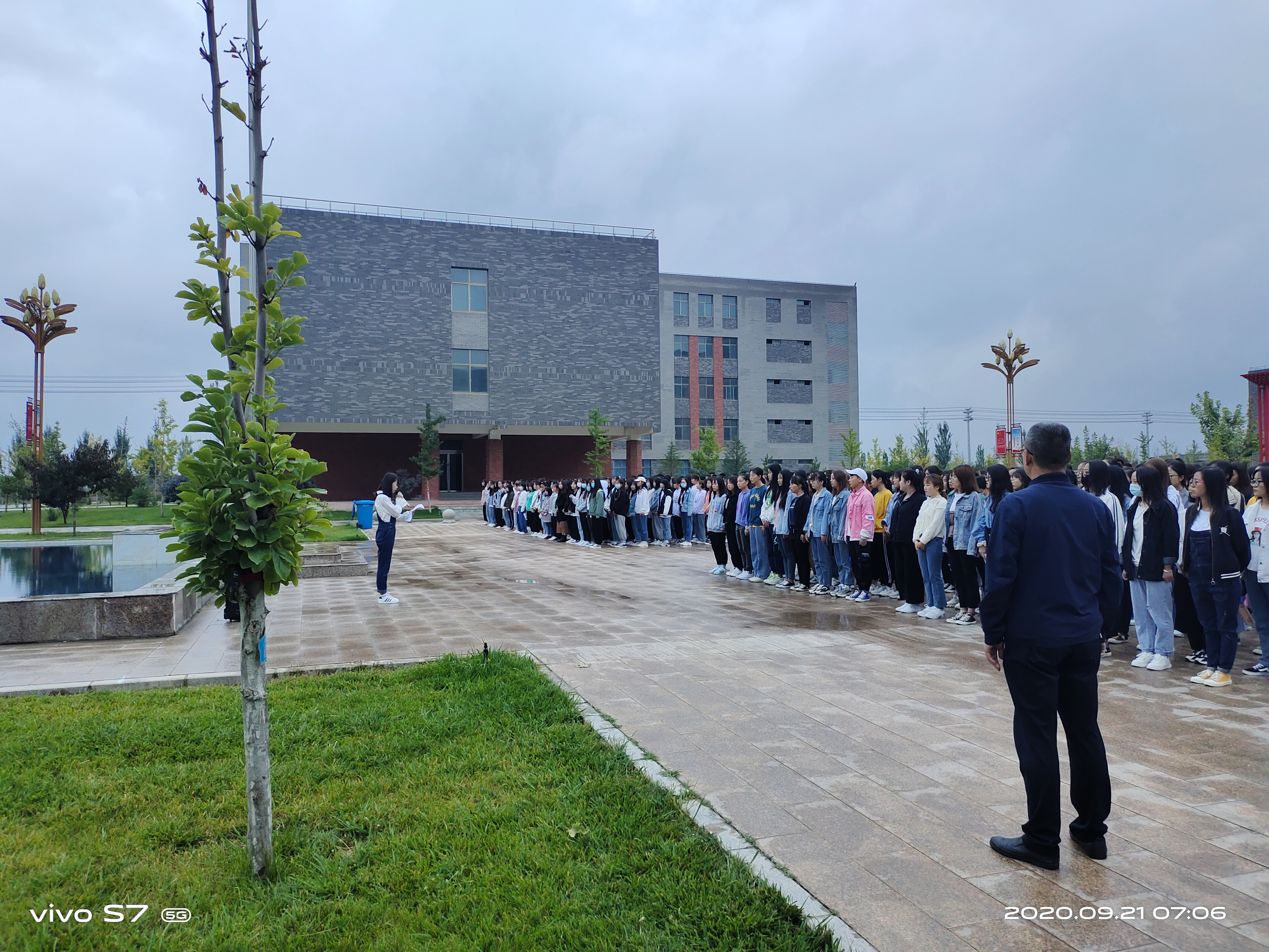 9月21日7點(diǎn)00分,藥學(xué)系在學(xué)院圖書館東廣場舉行升國旗儀式。系黨總支書記魏潤明、系副主任楊建美及藥學(xué)系700多名師生參加了此次升國旗儀式。