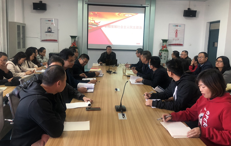 10月22日下午,武威職業(yè)學院馬克思主義學院副院長、副教授胡靜峰應(yīng)邀來到電子信息工程系,宣講《習近平談治國理政》第三卷。電子信息工程系全體教師參加了宣講會,系黨總支書記袁青年主持會議。