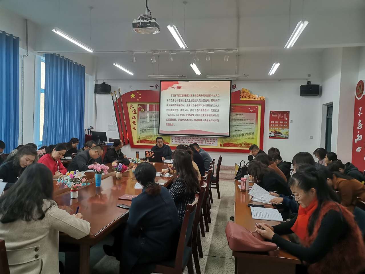 其次,他重點以第10個專題“積極發(fā)展社會主義民主政治”,圍繞堅持黨的領導、堅持人民當家做主、堅持依法治國三個重點內容展開講解。向全體教師深入闡述了中國共產黨以“人民至上、生命至上”高度負責的態(tài)度,把老百姓的幸福當成了自己的事業(yè),積極推進發(fā)展社會主義民主政治建設。