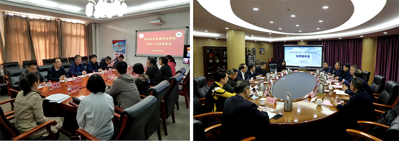 考察組一行分別與天津醫(yī)學高等專科學校、天津職業(yè)大學進行了深入交流座談。天津醫(yī)高專是國家雙高校中唯一一所衛(wèi)生類學校,在座談會上,醫(yī)高專為學院醫(yī)藥衛(wèi)生類專業(yè)群建設提出了指導意見,介紹了醫(yī)高?!?.5+1.5”學制安排促就業(yè)、教學系黨委行政雙組長抓就業(yè)、就業(yè)工作經(jīng)費動態(tài)調(diào)整引領就業(yè)的工作機制,并就下一步共同培養(yǎng)師資、互派青年骨干教師交流學習達成共識。天津職業(yè)大學是《天津—甘肅職業(yè)教育協(xié)作實施方案》合作院校,在天津職大座談會上,兩校圍繞專業(yè)群組群、產(chǎn)業(yè)學院組建模式、教學模式、探索產(chǎn)業(yè)學院建設、混合所有制二級學院建設、就業(yè)工作“一對一”模式、學生管理經(jīng)驗和成果進行了分享與交流。劉斌校長出席并主持會議,對學院的雙高建設給予了特別關(guān)心與指導。他希望,雙方作為兄弟院校,要進一步加強交流合作,努力為推動東西協(xié)作和武威職業(yè)教育高質(zhì)量發(fā)展做出新的更大的貢獻。