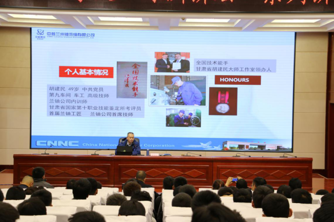 報告會上,胡建民大師首先向師生介紹了蘭鈾公司的光輝歷程、歷史貢獻、公司概況,然后圍繞個人成長經歷、學習交流工作培訓、工作室工作方向三個方面深入淺出地講述了自己的工匠之路,為同學們在專業(yè)技能、就業(yè)指導、職業(yè)素養(yǎng)等方面分享了自己的生活、工作經驗,師生們獲益良多。