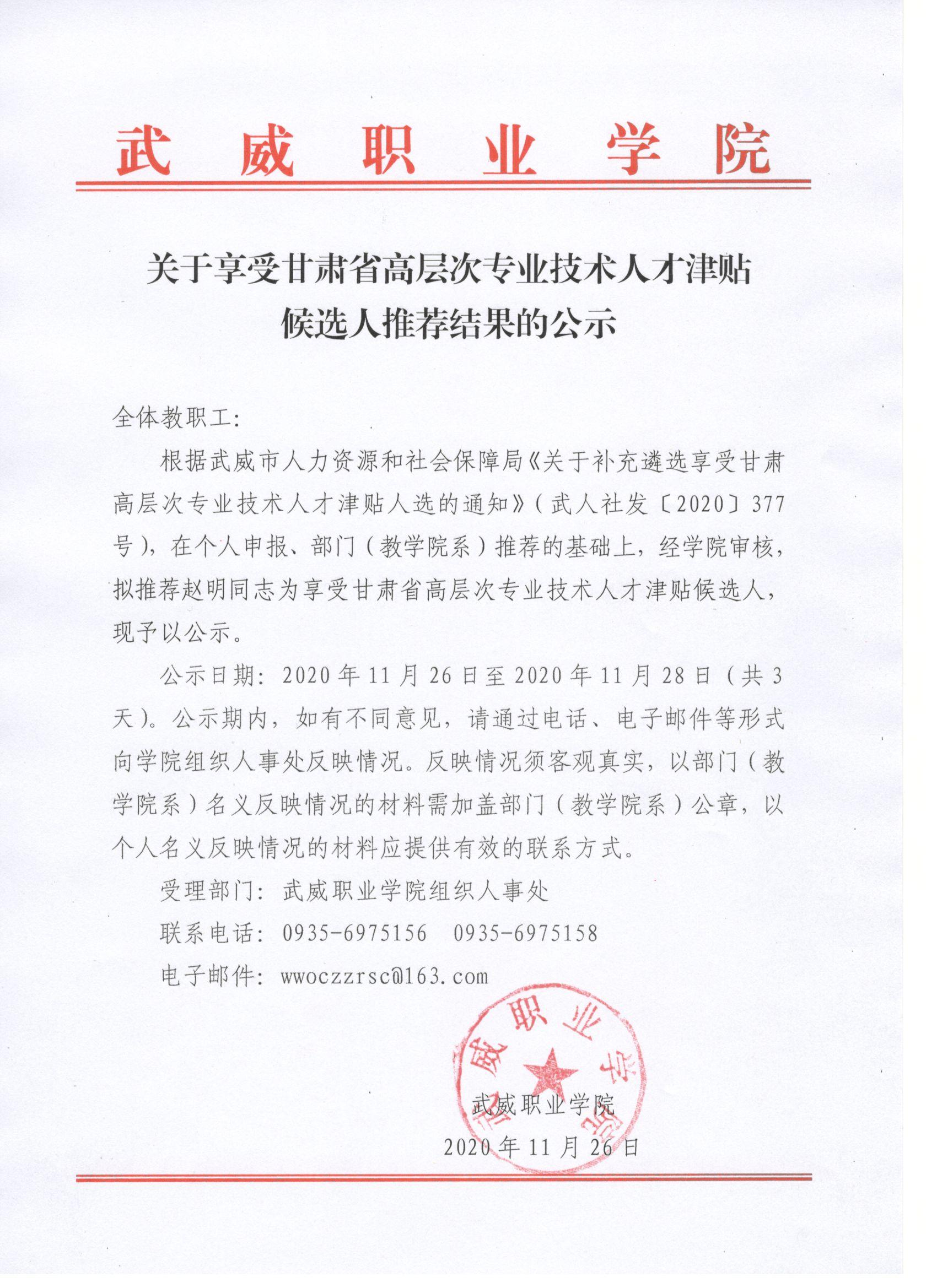 武威職業(yè)學(xué)院關(guān)于2020年高校副教授、講師職稱評(píng)審結(jié)果的公示