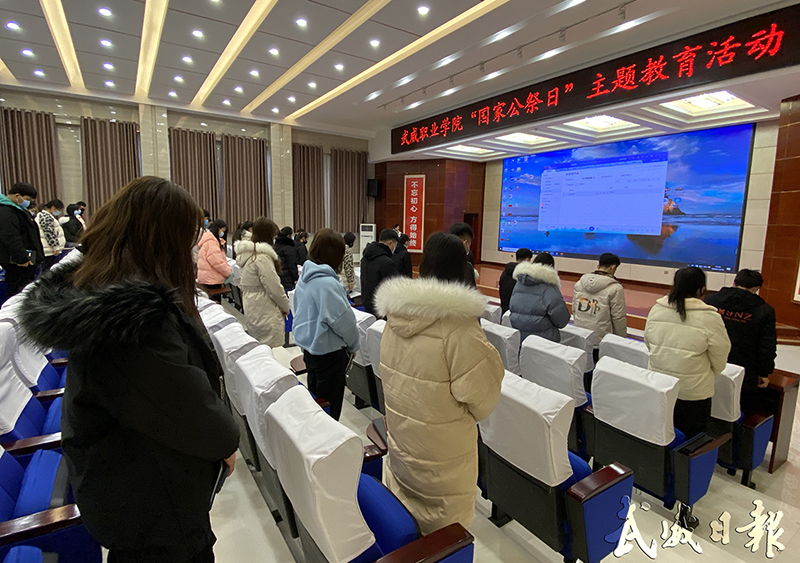 當(dāng)天各系組織開展了國家公祭日主題團(tuán)日活動(dòng)。通過學(xué)習(xí)南京大屠殺相關(guān)歷史知識(shí)、講解國家公祭日設(shè)立的重大意義、進(jìn)行默哀儀式、共同宣讀《和平宣言》等形式表達(dá)對(duì)南京大屠殺遇難者的哀悼與哀思。12月14日《武威日?qǐng)?bào)》刊發(fā)了我院開展國家公祭日主題教育活動(dòng)新聞報(bào)道。