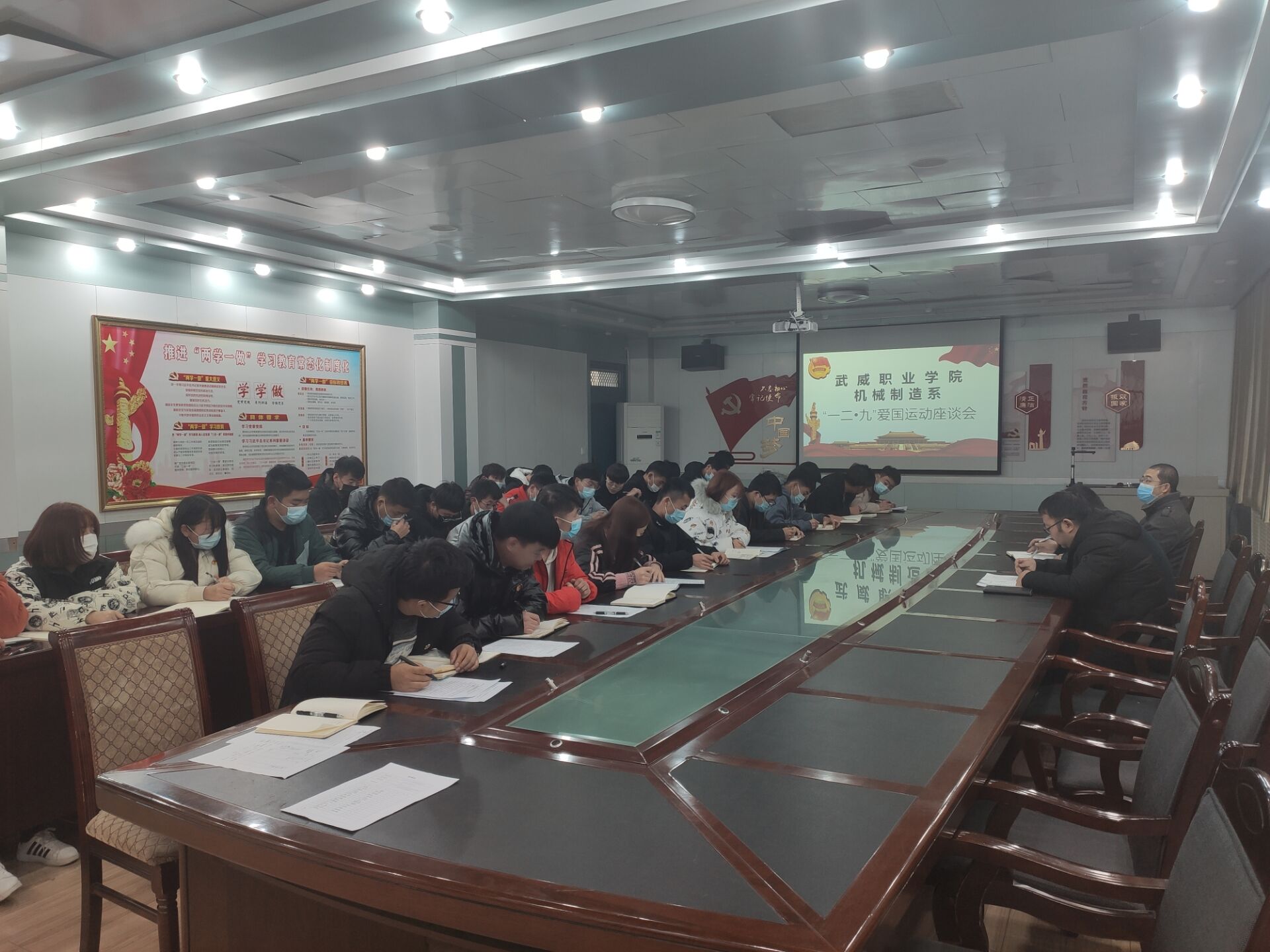 為了紀念“一二·九”愛國運動,我系于2020年12月9日,在博學(xué)樓二樓黨員活動室召開了武威職業(yè)學(xué)院機械制造系“一二·九”愛國運動座談會,參會人員有大二團學(xué)委員會全體成員以及18級、19級、20級各班團支書。