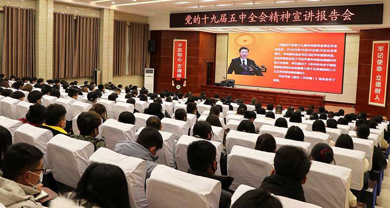 12月30日晚,黨委書記、院長趙明在菁英廳為黨員干部和師生作題為“認真學習貫徹黨的十九屆五中全會精神 為建設‘雙高’院校不懈努力奮斗”的宣講報告。進一步引領師生學習認知十九屆五中全會的重大意義,深刻把握主要內涵,準確領會十九屆五中全會關于教育事業(yè)的重要論述,全面貫徹十九屆五中全會精神、推進學院教育事業(yè)再獲新業(yè)績。