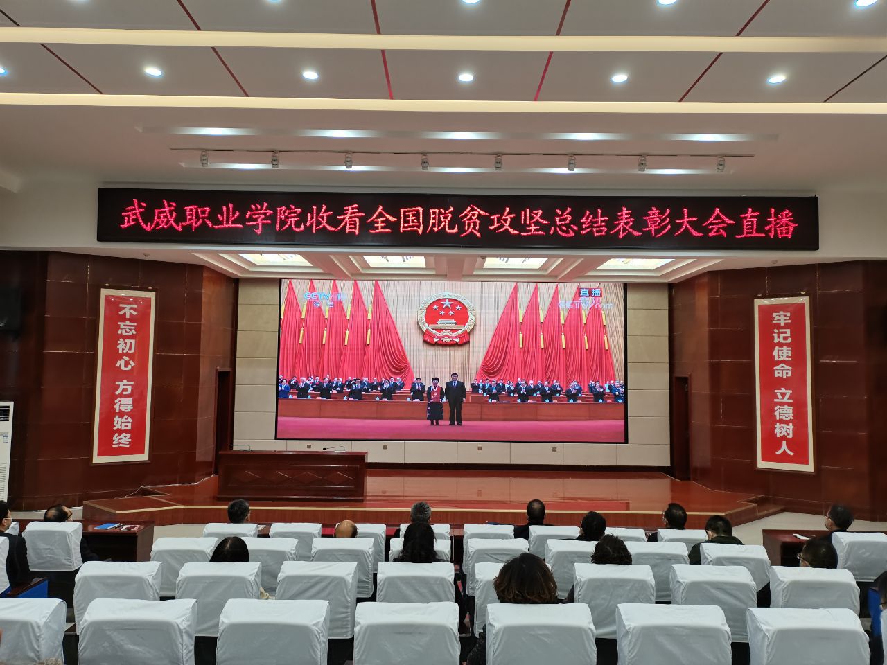 武威職業(yè)學(xué)院干部職工收看全國脫貧攻堅(jiān)總結(jié)表彰大會(huì)