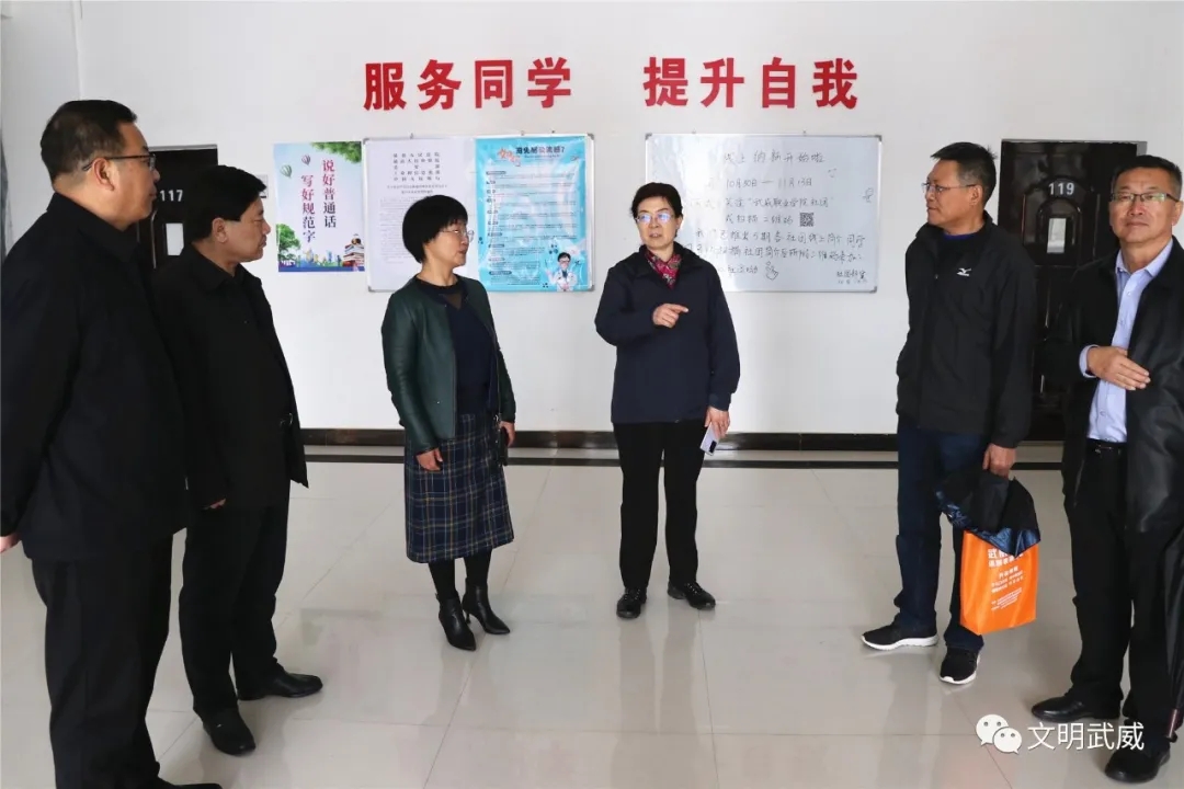3月31日,市人大常委會黨組書記、主任周曉紅到包抓的武威職業(yè)學(xué)院調(diào)研督導(dǎo)創(chuàng)建全國文明城市工作。