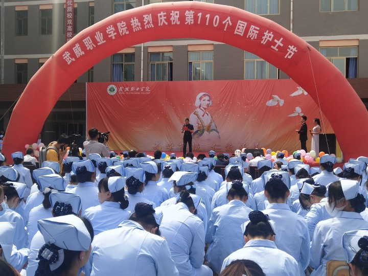 在第110個國際護士節(jié)到來之際,為慶祝中國共產(chǎn)黨百年華誕,繼承和弘揚南丁格爾救死扶傷的人道主義精神和為護理事業(yè)無私奉獻的高尚品質(zhì),強化我院護生職業(yè)理念和使命擔(dān)當(dāng),推動我院護理事業(yè)不斷向前發(fā)展,助力學(xué)院“雙高”建設(shè),5月11日下午,學(xué)院在明遠樓北廣場舉辦5.12國際護士節(jié)慶?;顒?。學(xué)院副院長王永緒、張開禮、武威市區(qū)部分實習(xí)醫(yī)院護理部、科教科負(fù)責(zé)人及學(xué)院相關(guān)處室領(lǐng)導(dǎo)出席本次活動,護理系師生1600余人參加了本次活動。