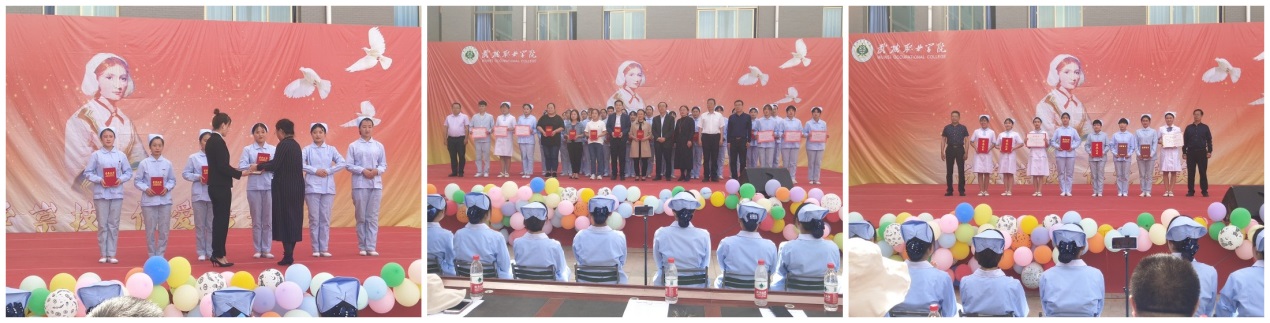 頒獎儀式激勵同學(xué)們銳意進取。伴隨著白衣天使之歌的音樂,學(xué)院領(lǐng)導(dǎo)向2021年甘肅省護理技能大賽獲獎選手及學(xué)院第七屆護理技能大賽獲獎的團體和個人表示熱烈的祝賀,同時頒發(fā)獎狀和榮譽證書并合影留念。