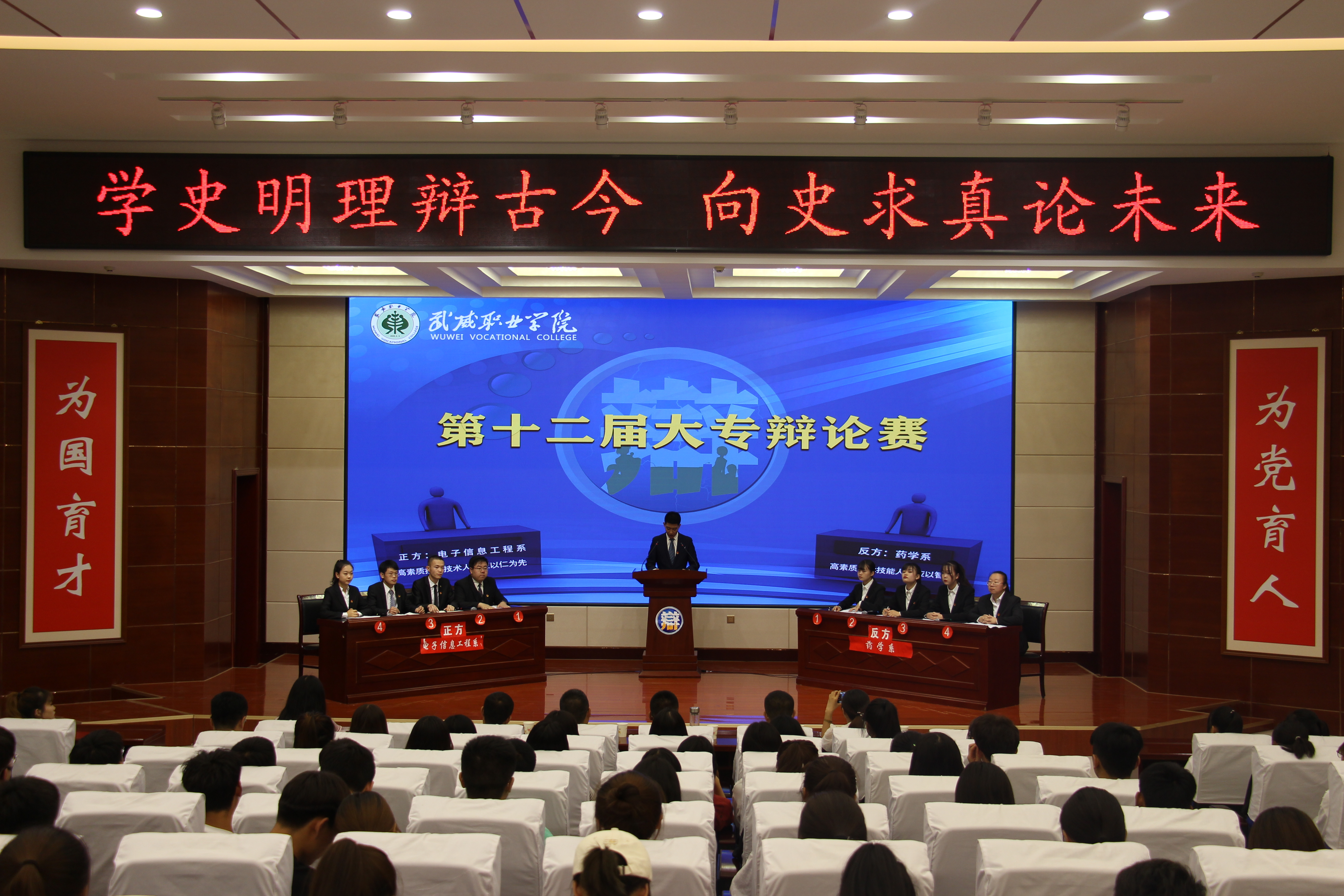 為推進(jìn)黨史學(xué)習(xí)教育,展現(xiàn)學(xué)生思辨風(fēng)采,論辯時(shí)代精神,喜迎建黨百年,7月1日晚,第十二屆大專(zhuān)辯論賽決賽在學(xué)生發(fā)展中心菁英廳舉行,學(xué)院黨委委員、副院長(zhǎng)王守云出席活動(dòng)并頒獎(jiǎng),200余名師生觀看了比賽。