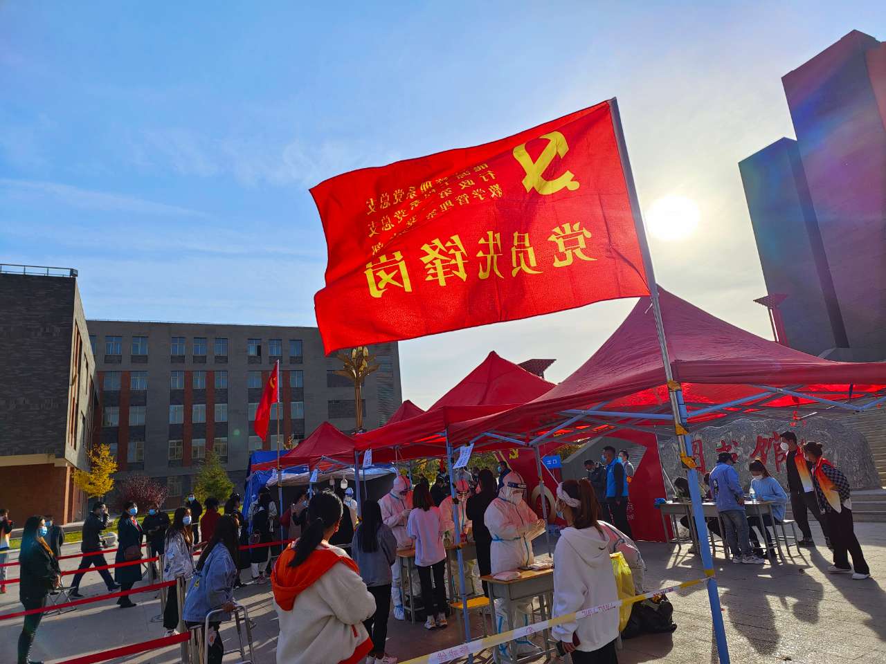 做師生員工“服務(wù)員”。涼州區(qū)實(shí)行車輛管控措施以后,學(xué)院積極與相關(guān)部門(mén)溝通為食堂、超市送貨車輛辦理“車輛通行證”,保證師生日常生活不受影響;大規(guī)模核酸檢測(cè)期間,學(xué)院迅速與社區(qū)聯(lián)系為醫(yī)務(wù)人員提供便利條件和餐飲服務(wù),組織師生黨員、入黨積極分子和團(tuán)學(xué)干部成立志愿者隊(duì)伍投入到秩序維護(hù)、信息登記、證明發(fā)放、物資運(yùn)輸?shù)雀黜?xiàng)工作中,保障了三輪大規(guī)模核酸檢測(cè)工作的順利完成;積極協(xié)調(diào)通信企業(yè)為師生提供優(yōu)質(zhì)網(wǎng)絡(luò)服務(wù),保障疫情防控期間線上教學(xué)順利開(kāi)展;完善智慧教學(xué)資源庫(kù)建設(shè),引入更多的優(yōu)質(zhì)線上教學(xué)資源,方便師生開(kāi)展線上教學(xué)和學(xué)習(xí)......始終把師生的一樁樁、一件件“小事”當(dāng)作學(xué)院的“大事”,在疫情防控中扎實(shí)開(kāi)展“我為師生辦實(shí)事”實(shí)踐活動(dòng),堅(jiān)持把疫情防控作為檢驗(yàn)黨史學(xué)習(xí)教育成果、體現(xiàn)責(zé)任擔(dān)當(dāng)?shù)闹匾獞?zhàn)場(chǎng),讓黨旗在疫情防控第一線高高飄揚(yáng),筑牢保護(hù)人民群眾生命健康安全的“紅色防線”。