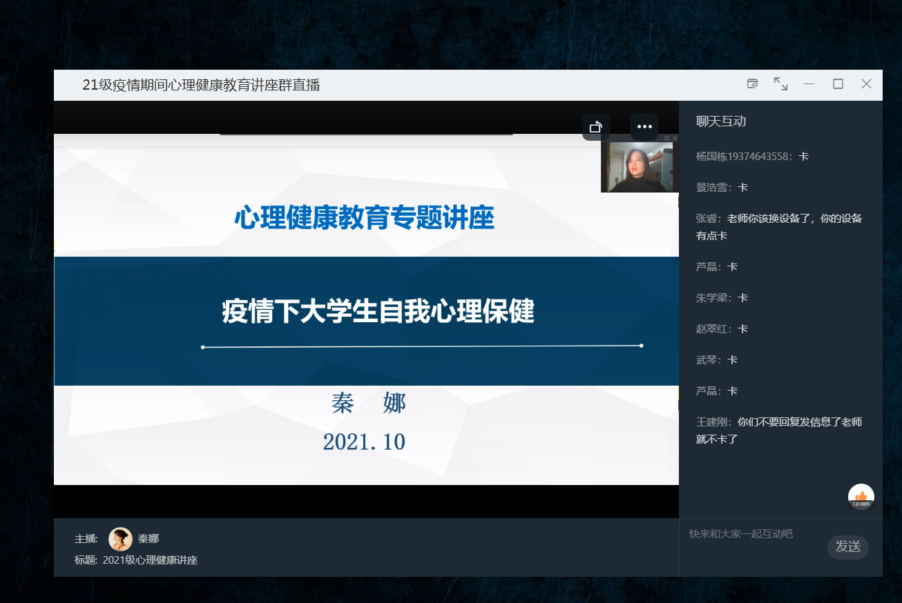為提升我系學(xué)生對新冠肺炎的科學(xué)認(rèn)識,做好心理健康知識宣傳普及,疏導(dǎo)學(xué)生因封閉管理帶來的負(fù)面情緒,營造強(qiáng)信心、暖人心、聚生心的校園氛圍,在經(jīng)濟(jì)管理系黨總支的領(lǐng)導(dǎo)部署下,學(xué)生黨支部精心整理了新型冠狀病毒肺炎相關(guān)學(xué)習(xí)資料及新冠肺炎疫情下促進(jìn)大學(xué)生心理健康相關(guān)網(wǎng)絡(luò)課程,邀請學(xué)院心里健康咨詢師秦娜老師組織開展疫情防控線上學(xué)習(xí)活動。此次學(xué)習(xí)活動面向全系2021級全體同學(xué),旨在幫助學(xué)生更好地了解有關(guān)新冠肺炎防護(hù)的知識,緩解同學(xué)們在封閉管理期間產(chǎn)生的煩躁不安等情緒,正確應(yīng)對疫情,有效保護(hù)自身安全。