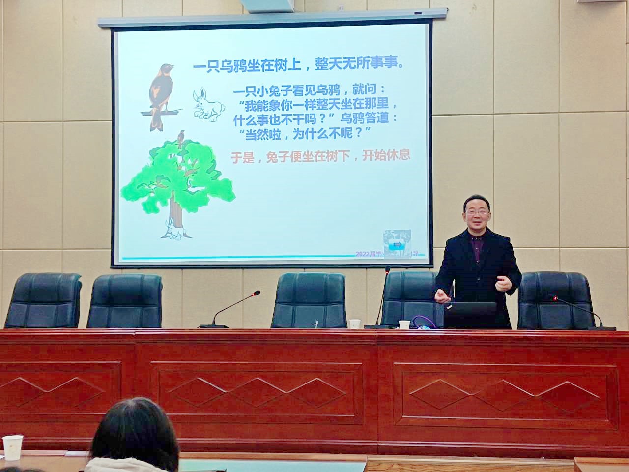最后,金主任對(duì)同學(xué)們開展就業(yè)指導(dǎo)。期間,金主任以幽默風(fēng)趣的語(yǔ)言,結(jié)合自身經(jīng)歷,貼合實(shí)際講解,引導(dǎo)同學(xué)們樹立正確的就業(yè)觀和擇業(yè)觀,以積極的心態(tài)面對(duì)嚴(yán)峻的就業(yè)形勢(shì)。