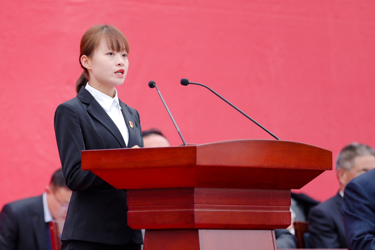 上午9時(shí),大會(huì)在莊嚴(yán)的國歌聲中拉開序幕,二十余名學(xué)生代表致獻(xiàn)詞《請黨放心,強(qiáng)國有我》,用最飽滿的聲音,堅(jiān)定地向黨道出了青春的誓言。