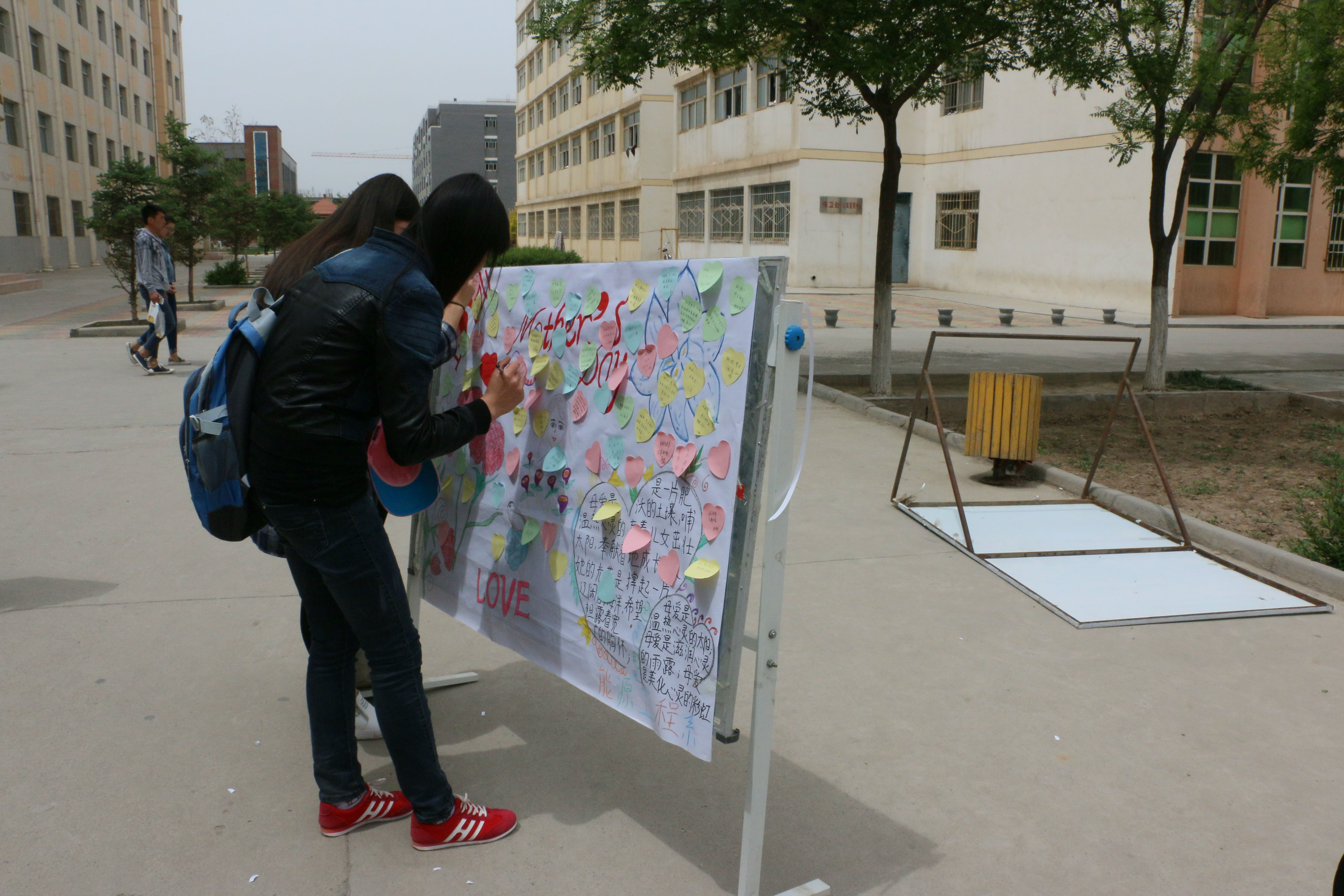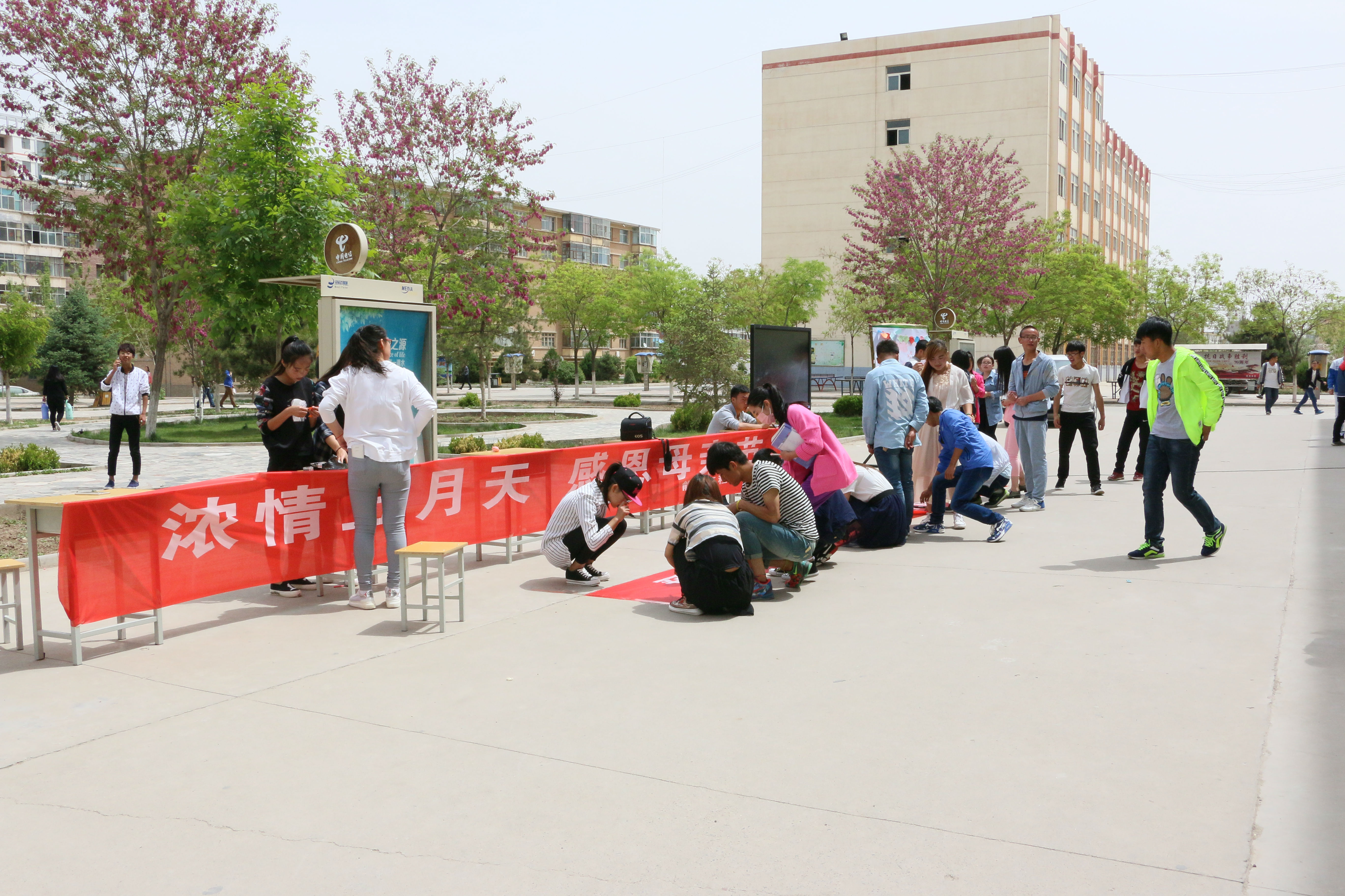今天早晨十一點左右,能源系全體學(xué)生會成員以為這次的活動準(zhǔn)備好了一切,有母親節(jié)的海報、母親節(jié)許愿瓶、對媽媽想說的話的展板、以及自己對媽媽祝福的簽名