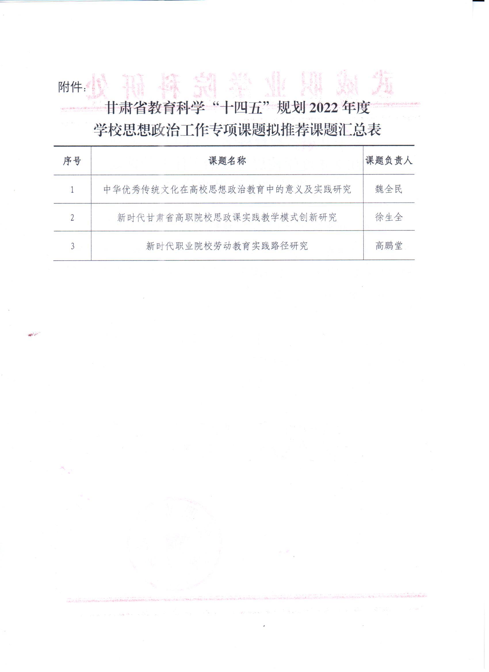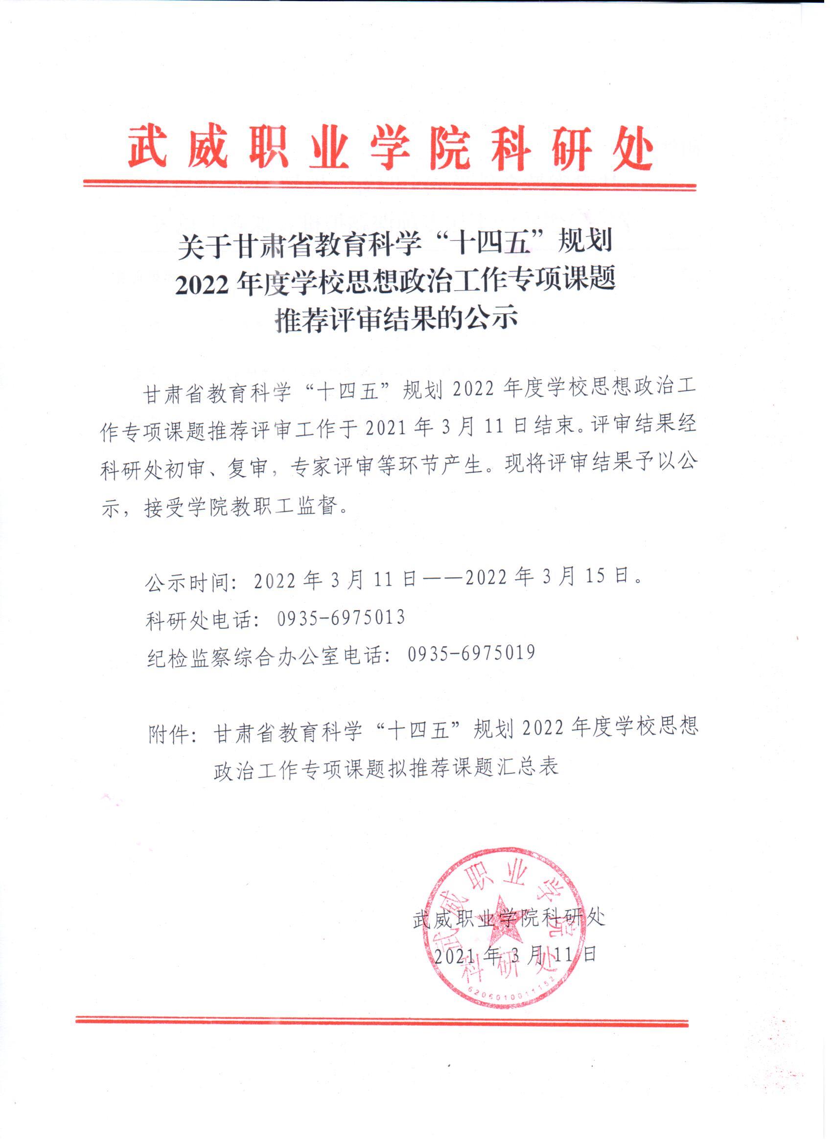 關(guān)于甘肅省教育科學(xué)“十四五”規(guī)劃2022年度學(xué)校思想政治工作專項課題推薦評審結(jié)果的公示