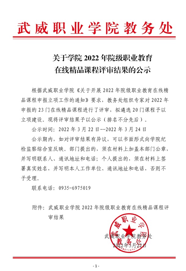 關(guān)于學(xué)院2022年院級職業(yè)教育在線精品課程評審結(jié)果的公示
