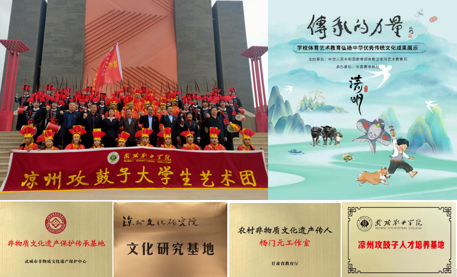 近年來,學校全力推進“雙高計劃”項目建設,組織成立了武威職業(yè)學院涼州攻鼓子大學生藝術團,聘請國家級非遺代表性傳承人楊門元親傳技藝,并開展了系列展演活動,著力打造特色校園文化品牌,助推文化繁榮、社會文明的新武威和華夏文明傳承創(chuàng)新區(qū)建設,服務鄉(xiāng)村振興戰(zhàn)略。