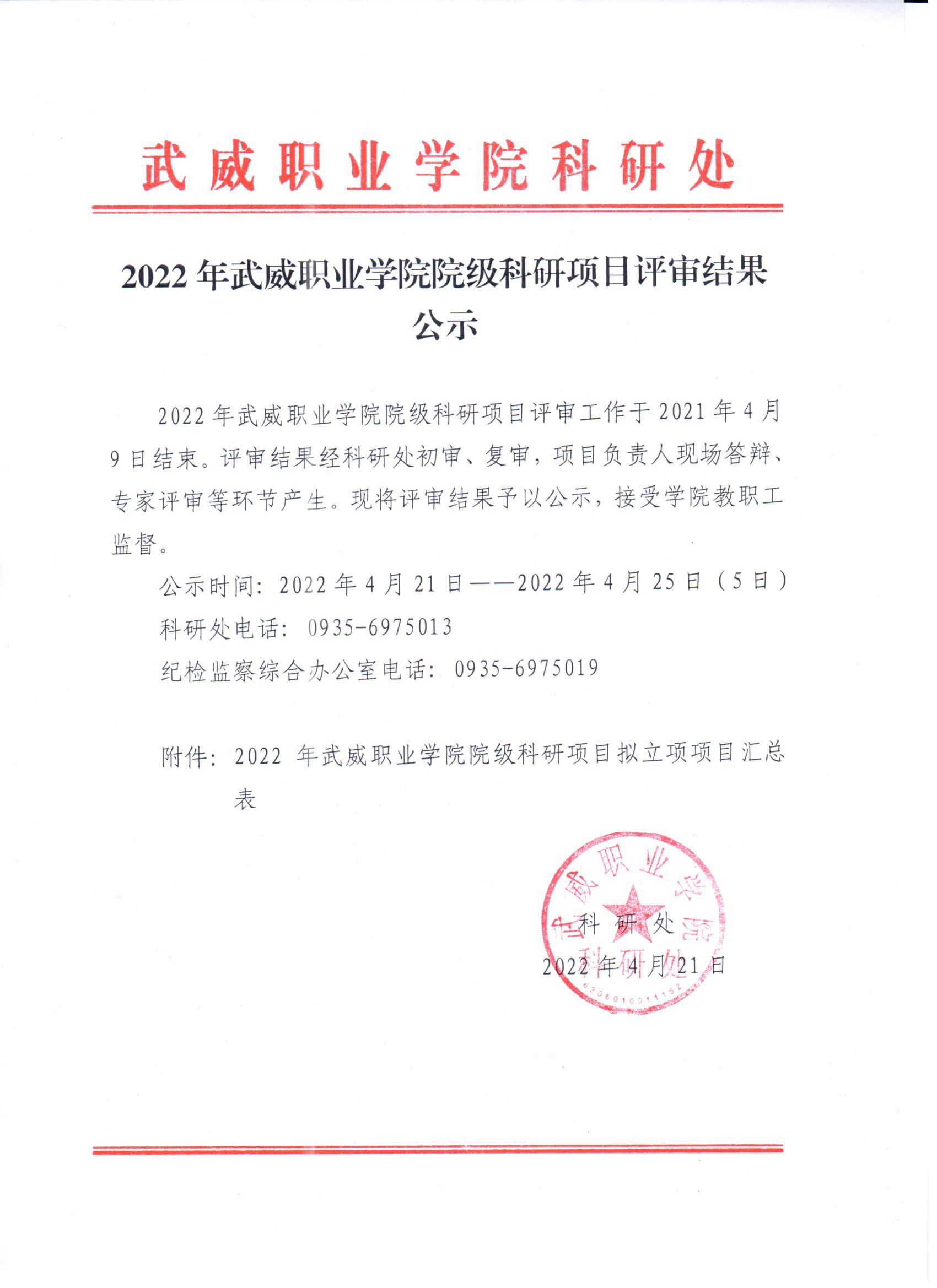 2022年武威職業(yè)學(xué)院院級科研項目評審結(jié)果公示