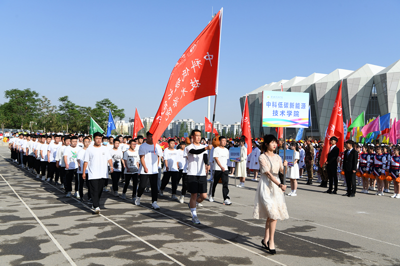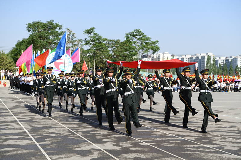 伴隨著激昂的運動員進行曲,國旗隊、彩旗隊、裁判員隊率先走過主席臺,9個代表隊方陣依次通過主席臺,接受檢閱。他們矯健的步伐,嘹亮的口號,整齊的隊伍,昂揚的風貌,充分展示了全校師生良好的精神風貌。