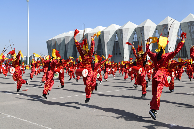 開幕式的最后一個環(huán)節(jié)是團體操表演。宏偉壯觀的國家級非物質(zhì)文化遺產(chǎn)項目攻鼓子表演,剛?cè)岵奈湫g(shù)表演,活力四射的健美操,使人精神振奮,熱情沸騰。一個個精彩的表演贏得了全場一陣陣的掌聲和歡呼聲,為開幕式營造了熱烈的氛圍,充分的展現(xiàn)了新時代大學生的青春風采。