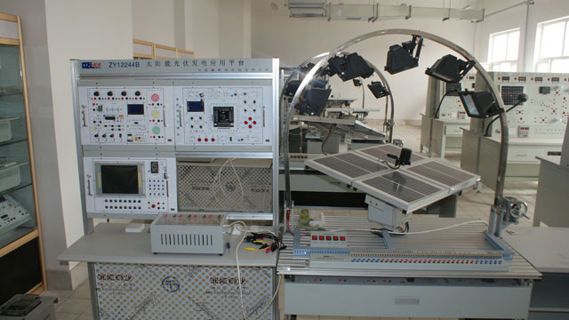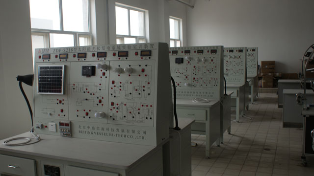 新能源實訓中心建有光伏發(fā)電實訓室和農(nóng)村能源實訓室,可開設(shè)光伏發(fā)電模擬實訓、光伏發(fā)電系統(tǒng)原理實訓、風光互補發(fā)電實訓、家用熱水器安裝實訓、太陽能集熱管性能實訓、太陽能輻射觀測、氣象數(shù)據(jù)測試、供配電技術(shù)實訓、電力系統(tǒng)機電保護實訓、沼氣發(fā)酵等實訓項目,配有二十五臺計算機,可進行仿真模擬實驗與實訓,其中光伏發(fā)電實訓平臺是由我院與湖北眾友科技實業(yè)股份有限公司共同開發(fā)研制,實訓室設(shè)計理念先進、設(shè)施設(shè)備齊全,達到了省內(nèi)同類高職院校能源類專業(yè)的一流水平。