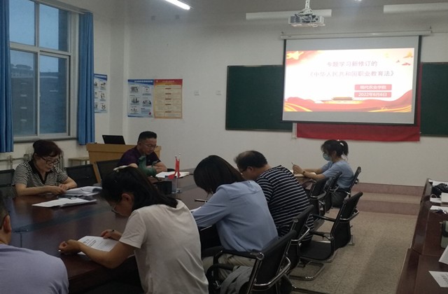 6月6日晚,現(xiàn)代農(nóng)業(yè)學(xué)院(鄉(xiāng)村振興學(xué)院)組織召開專題會議,學(xué)習(xí)新修訂的《中華人民共和國職業(yè)教育法》(以下簡稱《職業(yè)教育法》)。會議由學(xué)院黨總支書記晏素珍主持,院長金玉龍及全體教師參加了此次學(xué)習(xí)。