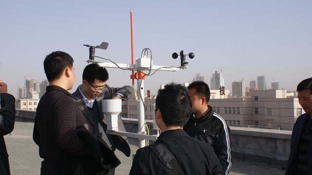 本次培訓旨在提高教師對新進實驗設備的熟悉程度,解答實驗過程存在的問題。設備廠家北京中鼎科技有限公司的技術(shù)人員為各位參加培訓的老師進行了講解和介紹。此次新進的實驗設施包括太陽能光伏發(fā)電應用平臺、太陽能光熱集熱器、氣象監(jiān)控站、太陽輻射能測量平臺、集熱管性能檢測平臺等專業(yè)相關(guān)的實驗設備。廠家的技術(shù)人員演示了太陽能光伏發(fā)電設備在太陽能蓄電池、太陽能離網(wǎng)并網(wǎng)發(fā)電方面的應用,并展示了氣象監(jiān)控站實時監(jiān)控的氣象數(shù)據(jù)。老師們在技術(shù)人員的帶領下來到了氣象監(jiān)控設備及太陽能輻射能測量設備安放的平臺,近距離的觀察了監(jiān)控設備的安裝和運行,并詢問了監(jiān)控設備的使用和維護的注意事項。
