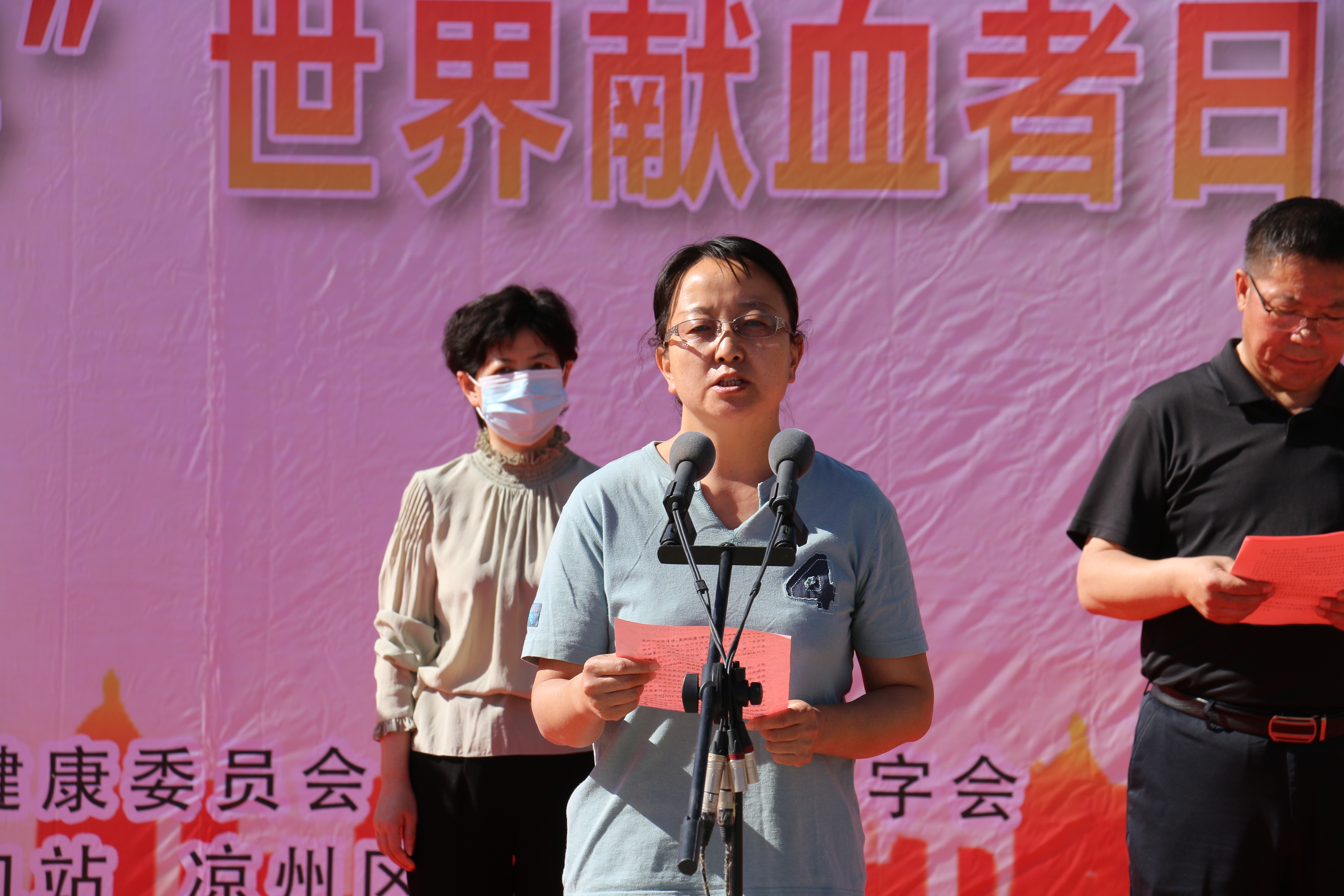 6月14日上午,由市衛(wèi)健委,市紅十字會(huì)主辦,市中心血站、涼州區(qū)衛(wèi)健局承辦的“獻(xiàn)血是一種團(tuán)結(jié)行為。加入我們, 拯救生命”慶祝第十九個(gè)世界獻(xiàn)血者日主題宣傳活動(dòng)在市文化廣場(chǎng)隆重舉行,市人大常委會(huì)副主任劉光美、市政協(xié)副主席趙曉暉、市政府副秘書(shū)長(zhǎng)李懷金出席活動(dòng)。學(xué)校黨委委員、副校長(zhǎng)田迎春參加活動(dòng),并代表學(xué)校發(fā)言。