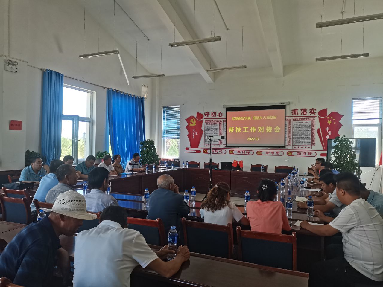 學(xué)校領(lǐng)導(dǎo)、橫梁鄉(xiāng)鄉(xiāng)長張熹中、黨委副書記王劍及幸福新村、康寧新村干部、村民代表召開推進(jìn)鄉(xiāng)村振興工作座談會(huì)。張熹中、王劍代表橫梁鄉(xiāng)對學(xué)校及駐村工作隊(duì)在鄉(xiāng)村振興中的幫扶工作表示感謝,特別是結(jié)合鄉(xiāng)村學(xué)校、文化需求,為橫梁鄉(xiāng)完成游園文化墻彩繪,在綠洲小學(xué)、古浪四中成立音樂、武術(shù)社團(tuán),為推進(jìn)鄉(xiāng)村振興發(fā)揮了重要作用。