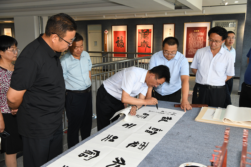 趙明在致辭中向市文旅局、市書畫院及齊澤山先生長期以來對學(xué)校改革發(fā)展給予的關(guān)心和支持表示衷心的感謝。他表示,齊澤山先生為學(xué)校捐贈的書法作品為整個校園人文景觀和文化環(huán)境增添了濃墨重彩的一筆,促進(jìn)了樓宇文化建設(shè)。學(xué)校將珍惜并運用好這些優(yōu)質(zhì)文化資源,發(fā)揮好藝術(shù)作品的審美功能、教育功能,用藝術(shù)熏陶和精神洗禮進(jìn)一步激勵廣大師生。