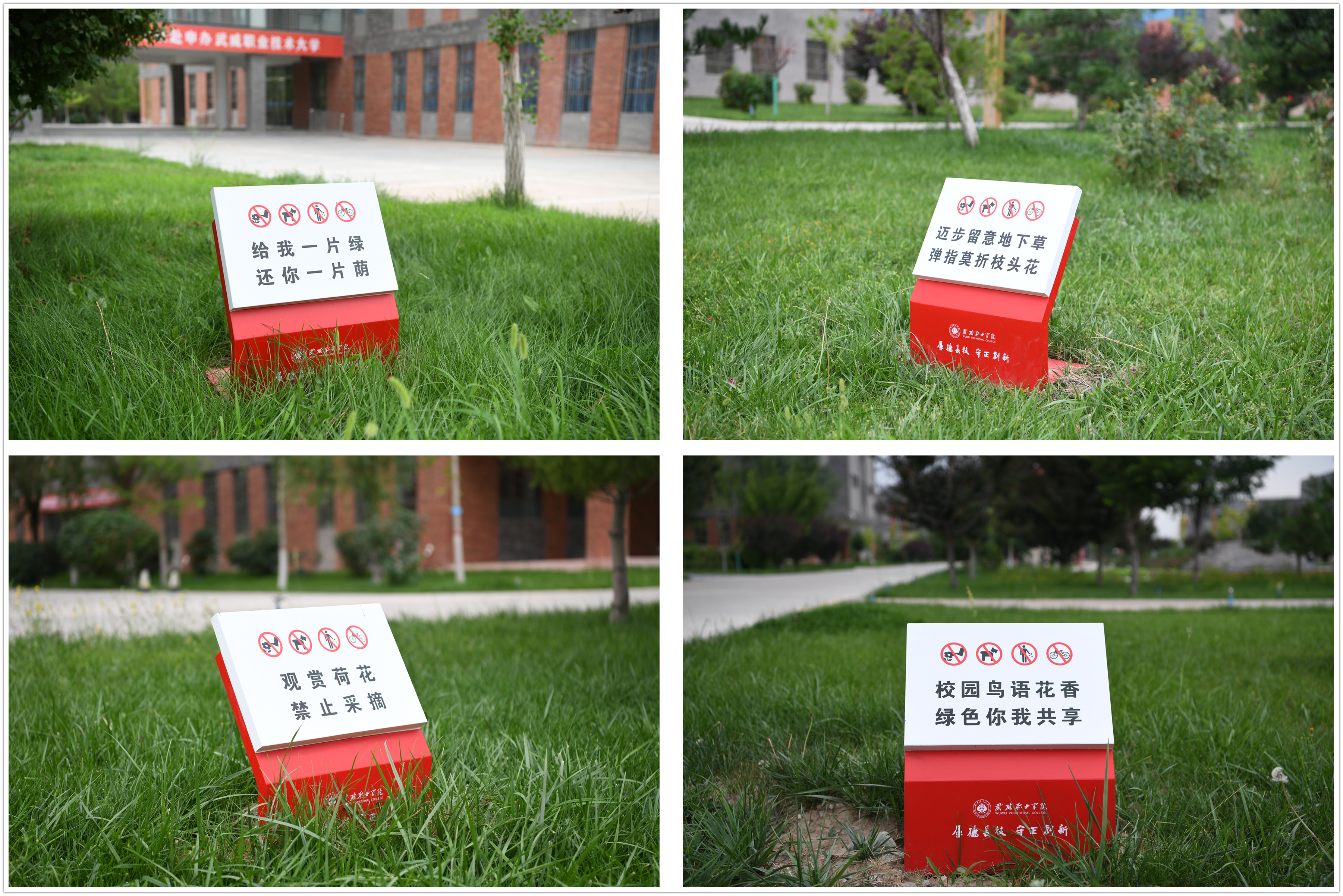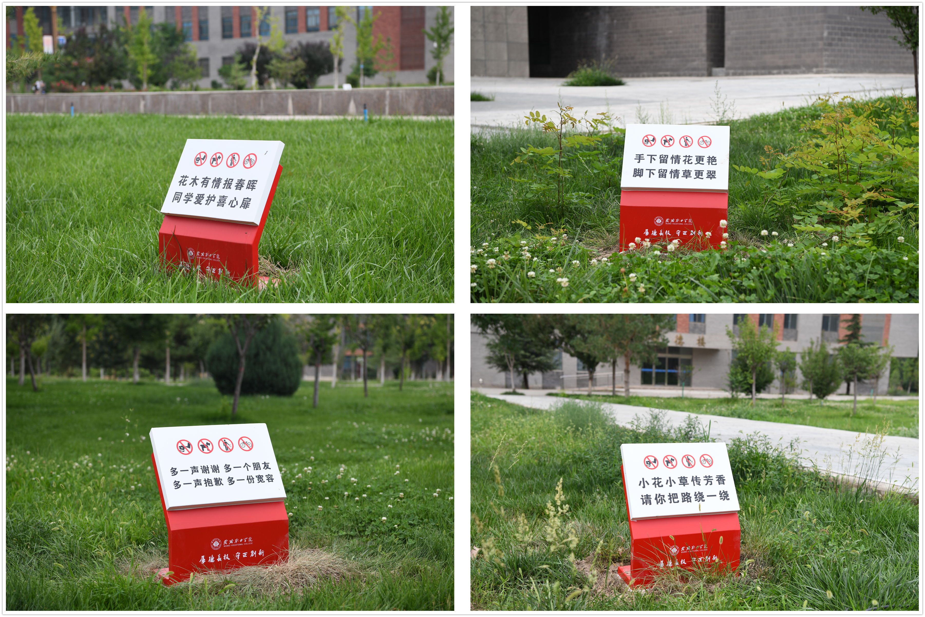 這些文明提示牌用語言簡意賅、生動活潑,設(shè)計典雅大方,富有人文情懷,與校園整體環(huán)境相得益彰,既起到提醒行人言行的作用,又使校園環(huán)境更加優(yōu)美,成為了校園一道亮麗的風(fēng)景。
