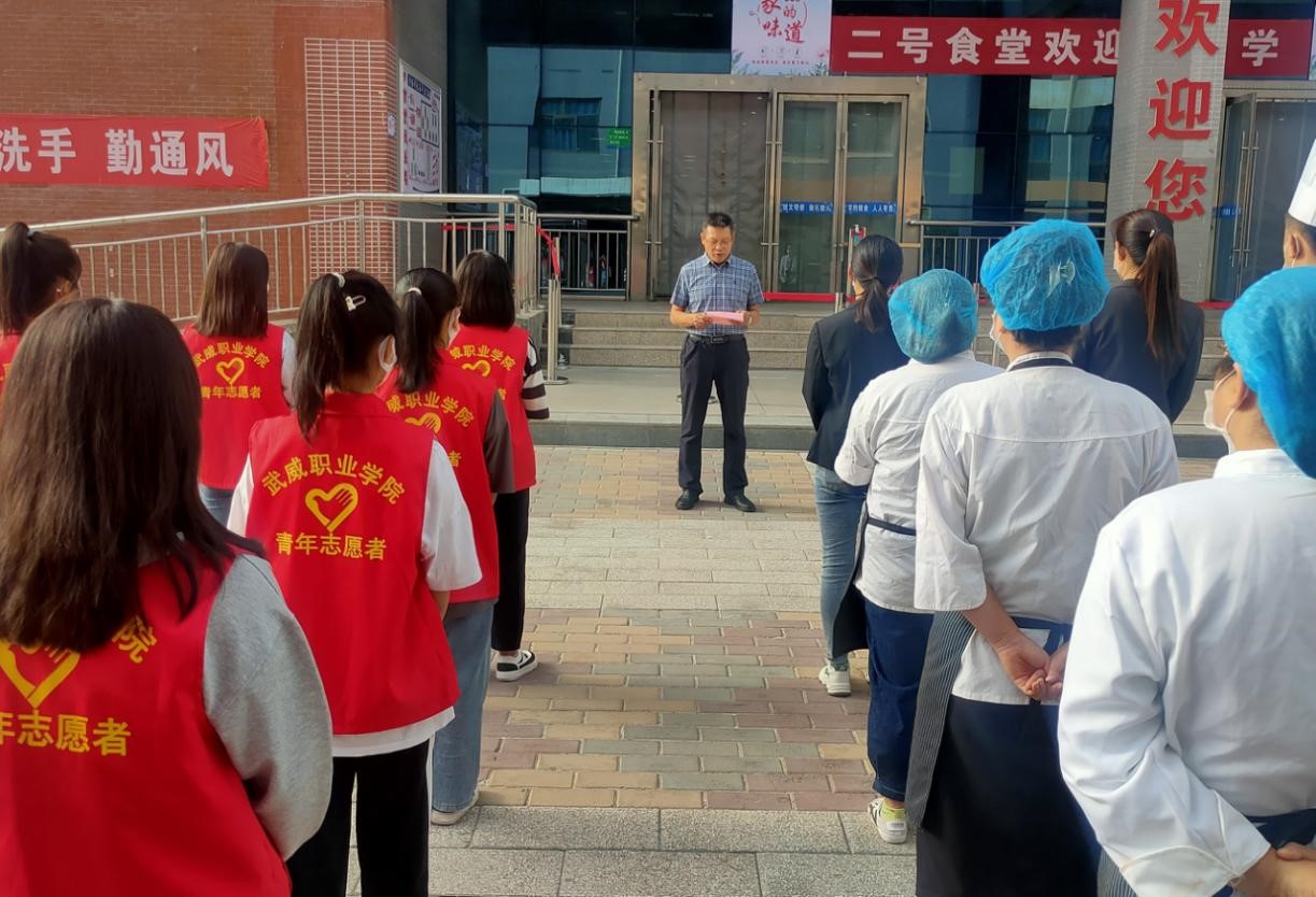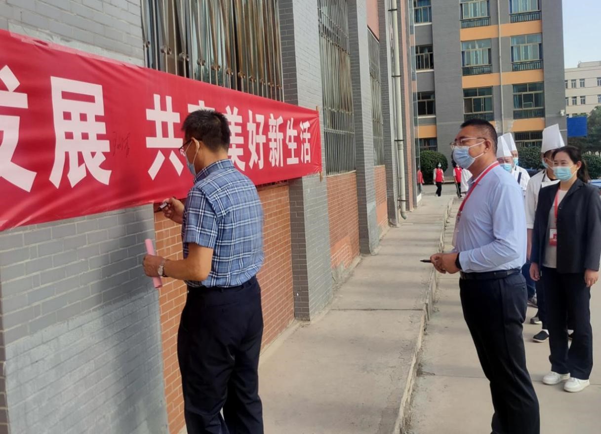 9月14日,學(xué)校2022年食品安全宣傳周活動(dòng)在學(xué)生食堂前拉開了序幕。學(xué)校黨委委員、副校長王永緒,后勤管理處相關(guān)人員,學(xué)校食堂、校企合作超市負(fù)責(zé)人及相關(guān)從業(yè)人員,部分學(xué)生志愿者參加啟動(dòng)儀式。學(xué)校黨委委員、副校長王永緒主持。