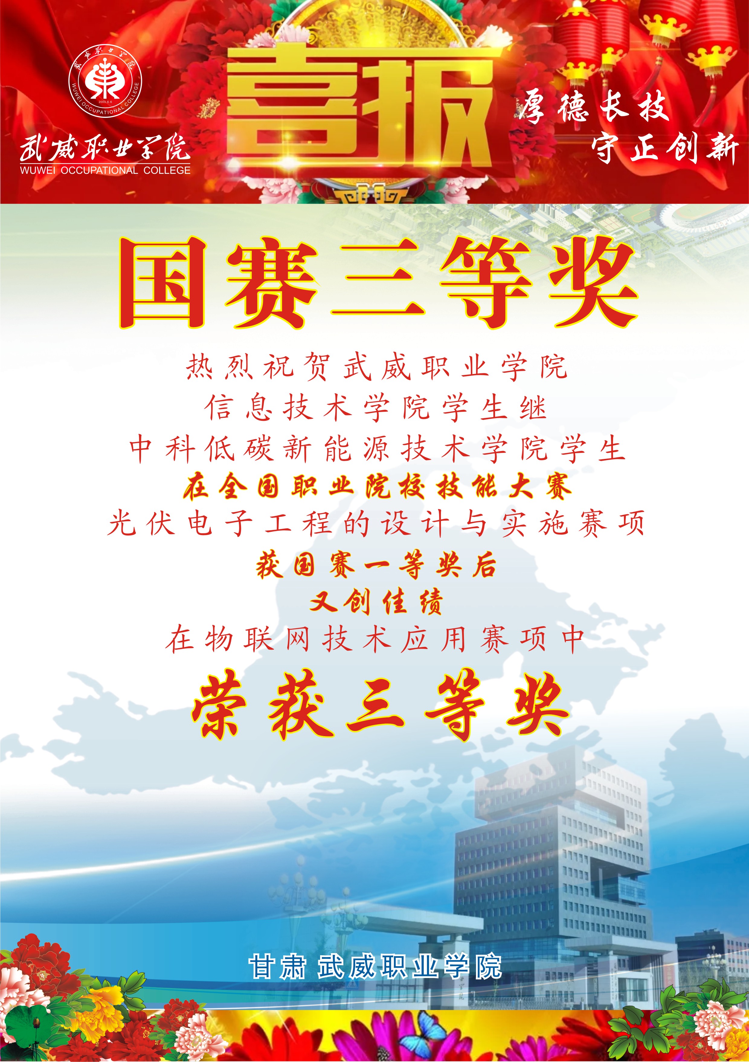 武威職業(yè)學院榮獲全國職業(yè)院校技能大賽國賽一等獎
