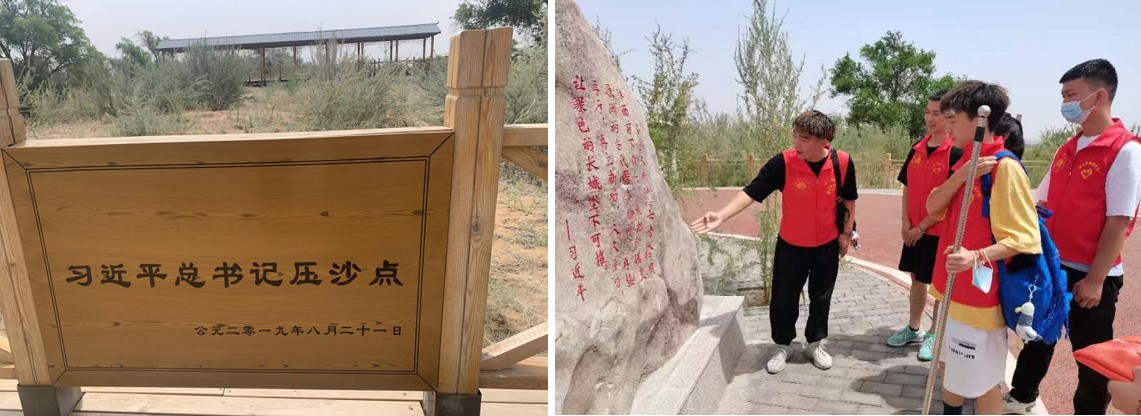 在兩山實(shí)踐基地負(fù)責(zé)人的指引下,我們參觀(guān)了習(xí)近平總書(shū)記曾經(jīng)到達(dá)過(guò)八步沙參與壓沙的目的地,認(rèn)真學(xué)習(xí)了習(xí)近平總書(shū)記在八步沙的講話(huà)精神,深刻領(lǐng)悟到了習(xí)近平總書(shū)記號(hào)召大家要弘揚(yáng)八步沙“六老漢”困難面前不低頭,敢把沙漠變綠洲的當(dāng)代愚公精神,在今后,我們將把這種精融入到實(shí)踐當(dāng)中,不負(fù)青春,不負(fù)韶華積極投身于祖國(guó)建設(shè)中。