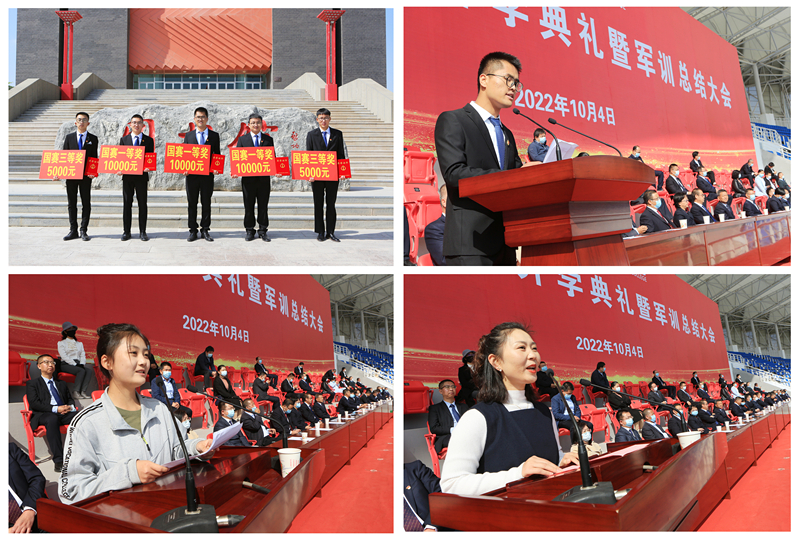 開學(xué)典禮前,舉行了新生軍訓(xùn)總結(jié)大會。各方陣隊列整齊劃一,步伐堅定有力,口號氣勢磅礴,歌聲嘹亮高亢,充分彰顯了廣大同學(xué)聽從命令、服從指揮、朝氣蓬勃、團結(jié)向上的良好精神風(fēng)貌。學(xué)生工作處負(fù)責(zé)人宣讀了2022年軍訓(xùn)先進(jìn)集體和軍訓(xùn)標(biāo)兵名單,出席大會的領(lǐng)導(dǎo)為先進(jìn)集體、個人頒發(fā)了獎牌和榮譽證書。
