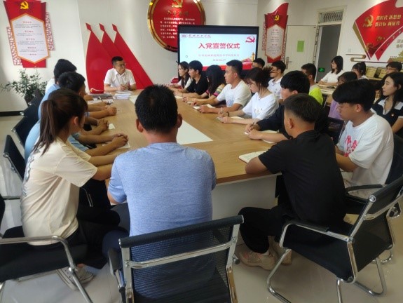 在“七一”來臨之際,為加強黨員教育、增強黨性觀念,中科低碳新能源技術(shù)學(xué)院黨總支于2022年6月27日下午在能源樓六樓黨員活動室組織開展了新黨員入黨宣誓儀式。學(xué)院黨總支全體黨員以及師生預(yù)備黨員參加宣誓儀式。