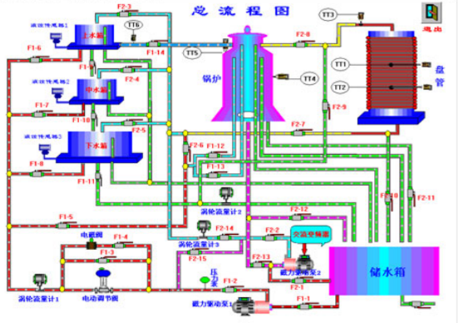 高級過程控制系統(tǒng)主要特點是被調(diào)參數(shù)囊括了流量、壓力、液位、溫度四大熱工參數(shù);執(zhí)行器中既有電動調(diào)節(jié)閥儀表類執(zhí)行機構(gòu),又有變頻器等電力拖動類執(zhí)行器。系統(tǒng)除了能改變調(diào)節(jié)器的設(shè)定值作階躍擾動外,還可在對象中通過電磁閥和手操作閥制造各種擾動。一個被調(diào)參數(shù)可用不同的動力源、不同的執(zhí)行器和不同的工藝線路下可演變成多種調(diào)節(jié)回路,以利于討論、比較各種調(diào)節(jié)方案的優(yōu)劣,從而進(jìn)行多變量控制系統(tǒng)及特定的高級過程控制系統(tǒng)實驗。