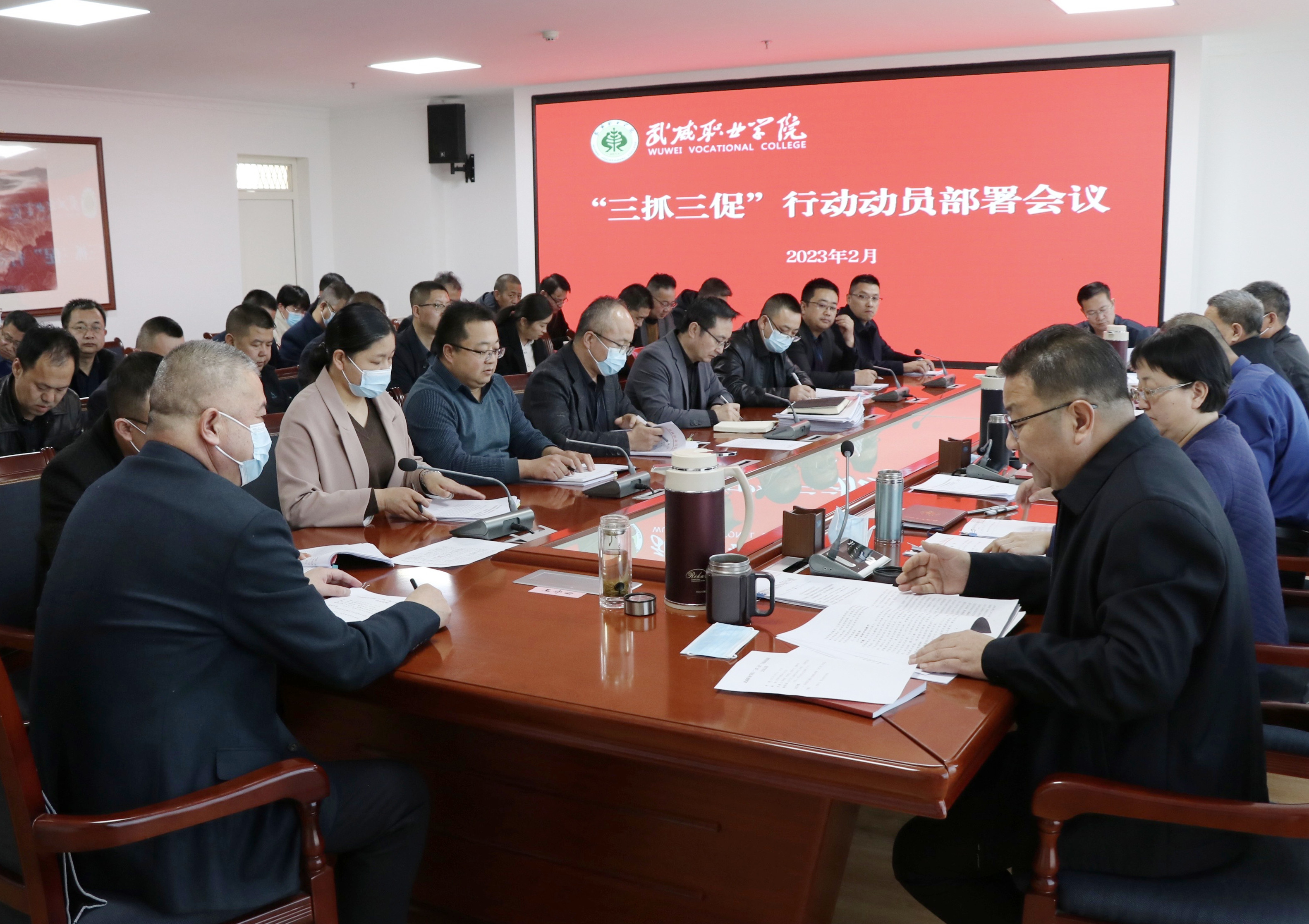 會(huì)議傳達(dá)學(xué)習(xí)了甘肅省、武威市和全省教育系統(tǒng)“三抓三促”行動(dòng)動(dòng)員部署會(huì)議精神,并對(duì)學(xué)校開(kāi)展“三抓三促”行動(dòng)進(jìn)行安排部署。