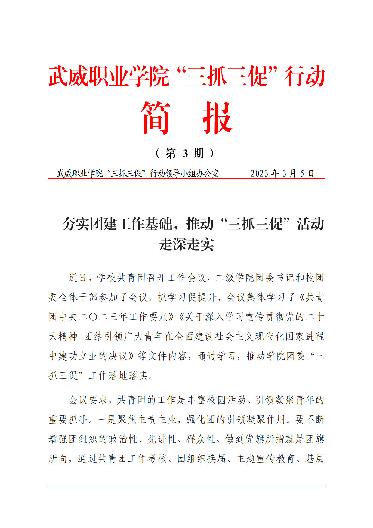 武威職業(yè)學院“三抓三促”行動簡報第3期