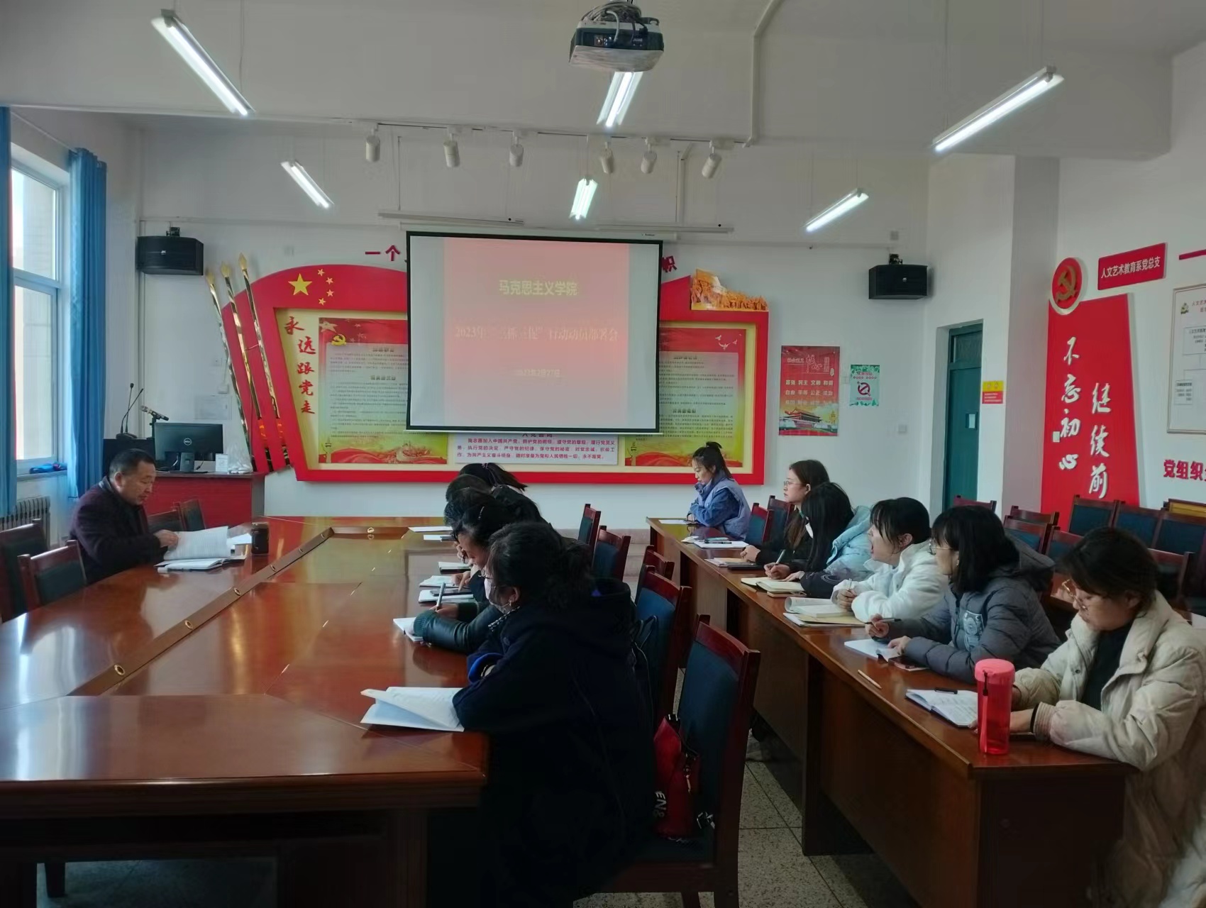 會議傳達(dá)學(xué)習(xí)了《武威職業(yè)學(xué)院“抓學(xué)習(xí)促提升抓執(zhí)行促落實(shí)抓效能促發(fā)展”行動實(shí)施方案》文件精神,全面梳理了馬克思主義學(xué)院在“三抓三促”行動中存在的具體問題,并結(jié)合學(xué)院實(shí)際,對2023年重點(diǎn)工作進(jìn)行了安排部署。
