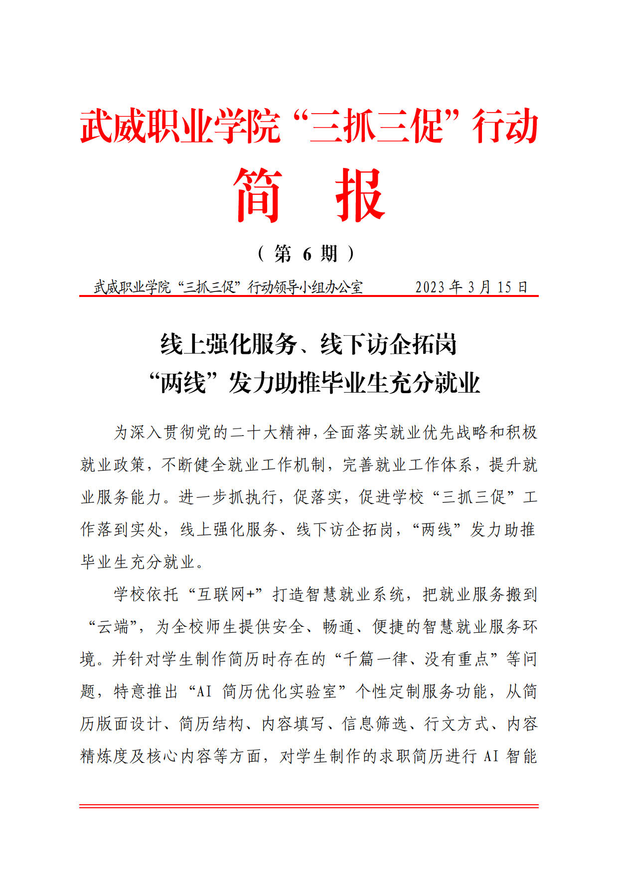 簡報(bào)第6期:線上強(qiáng)化服務(wù)、線下訪企拓崗,“兩線”發(fā)力助推畢業(yè)生充分就業(yè)