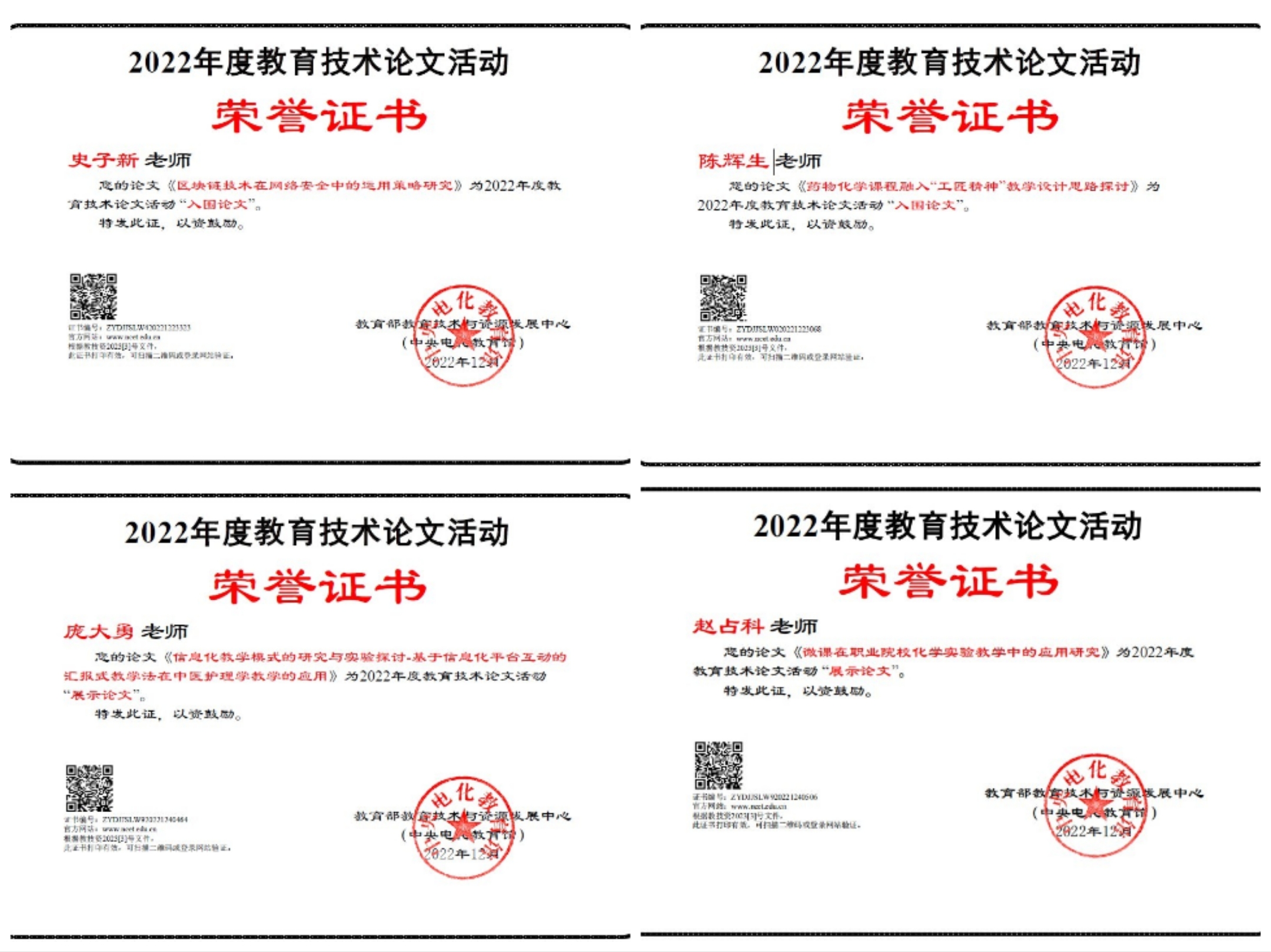 近日,教育部教育技術與資源發(fā)展中心(中央電化教育館)2022年全國師生信息素養(yǎng)提升實踐活動(第二十六屆教師活動)評審結果出爐。學校趙占科、龐大勇、史子新、陳輝生四名教師的教育技術論文被分別評為展示論文和入圍論文,學校在2022年度教育技術論文活動組織工作中被評為突出貢獻學校。