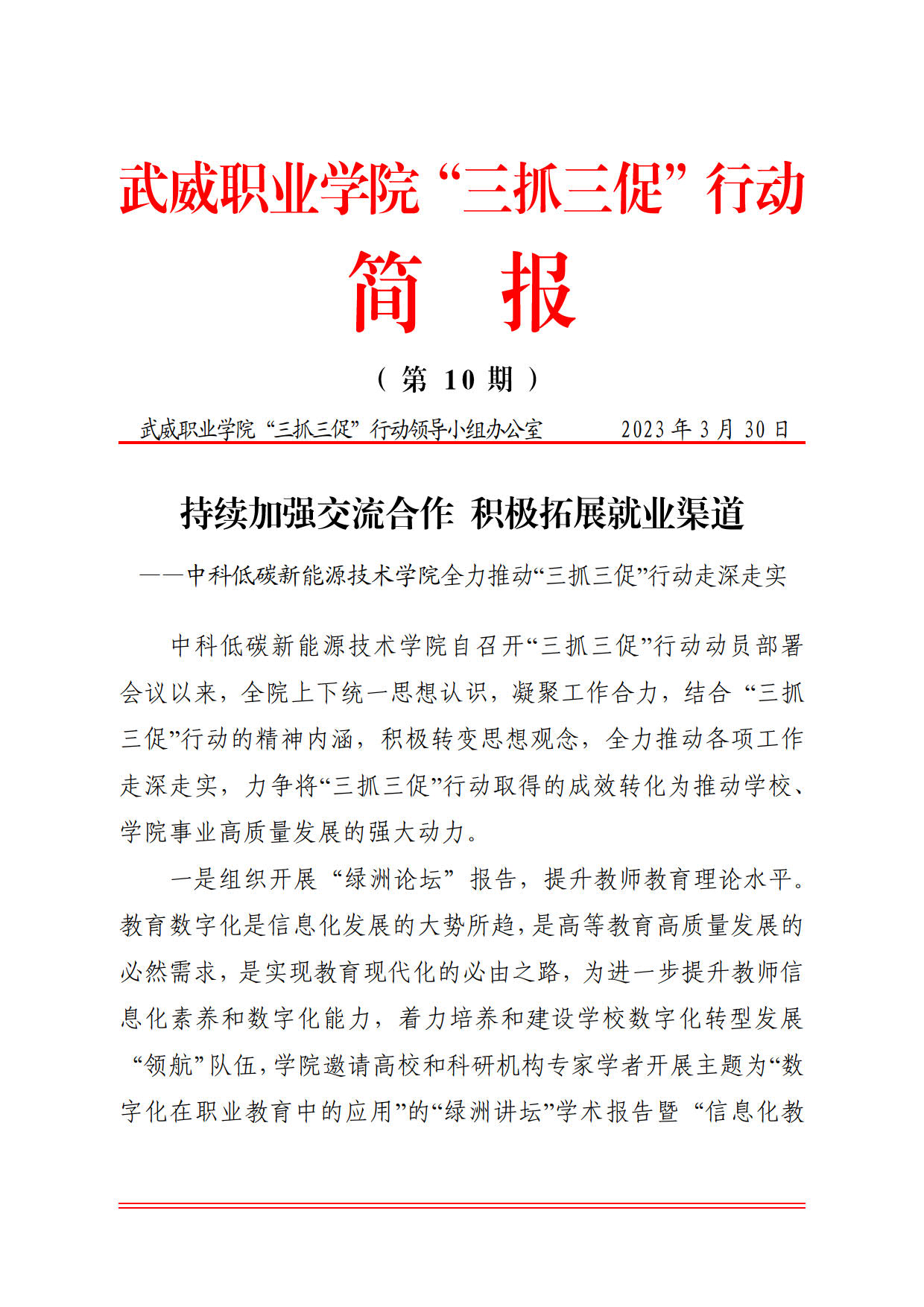 簡報第10期:持續(xù)加強交流合作 積極拓展就業(yè)渠道